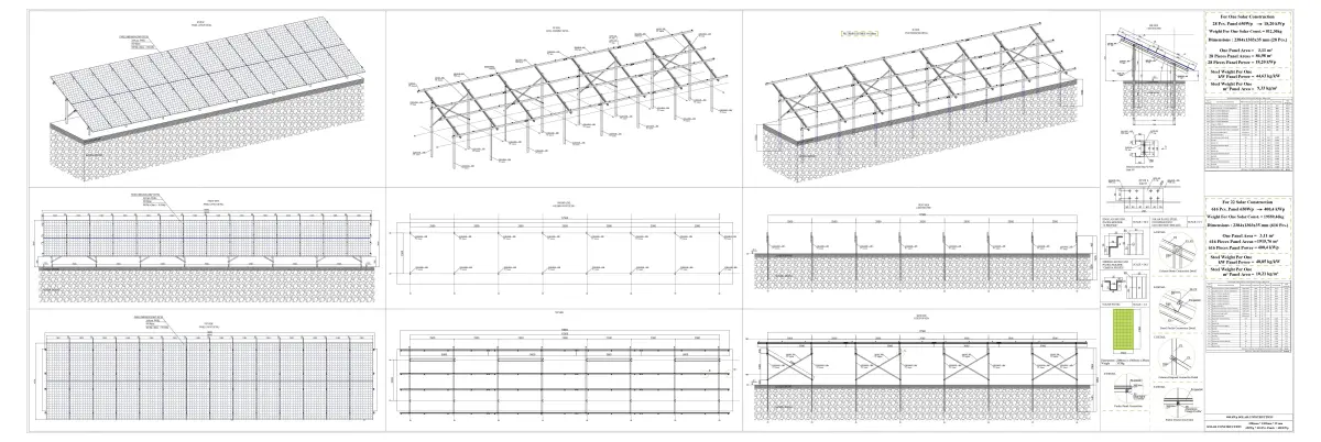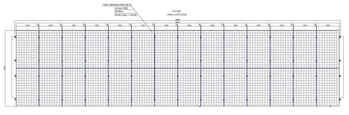 1 solar panel steel construction produces 18,8 kWp power in 1 hour