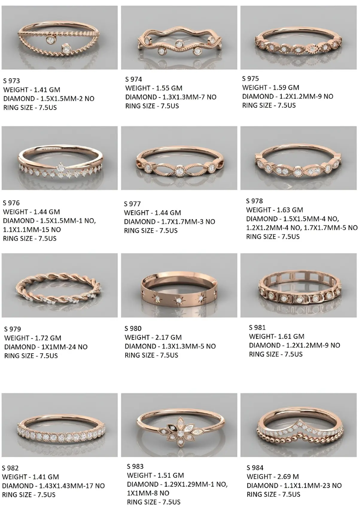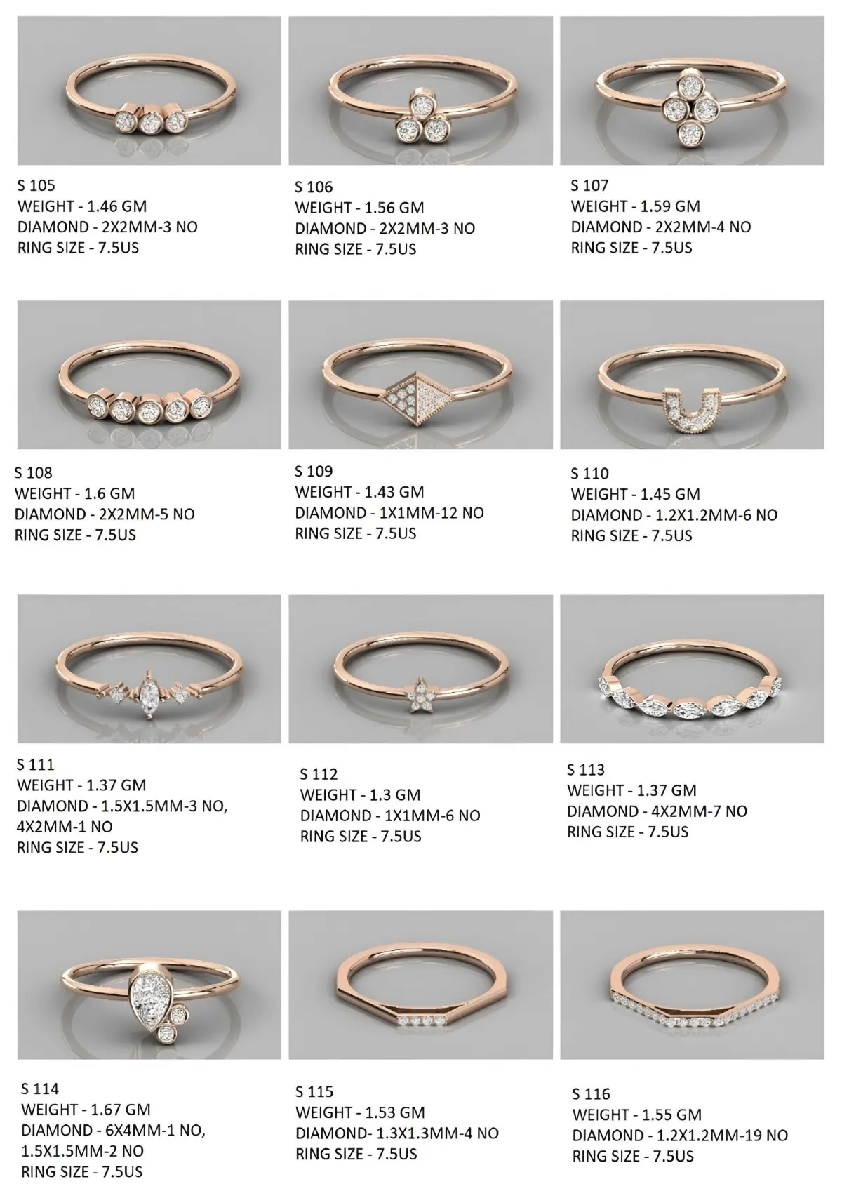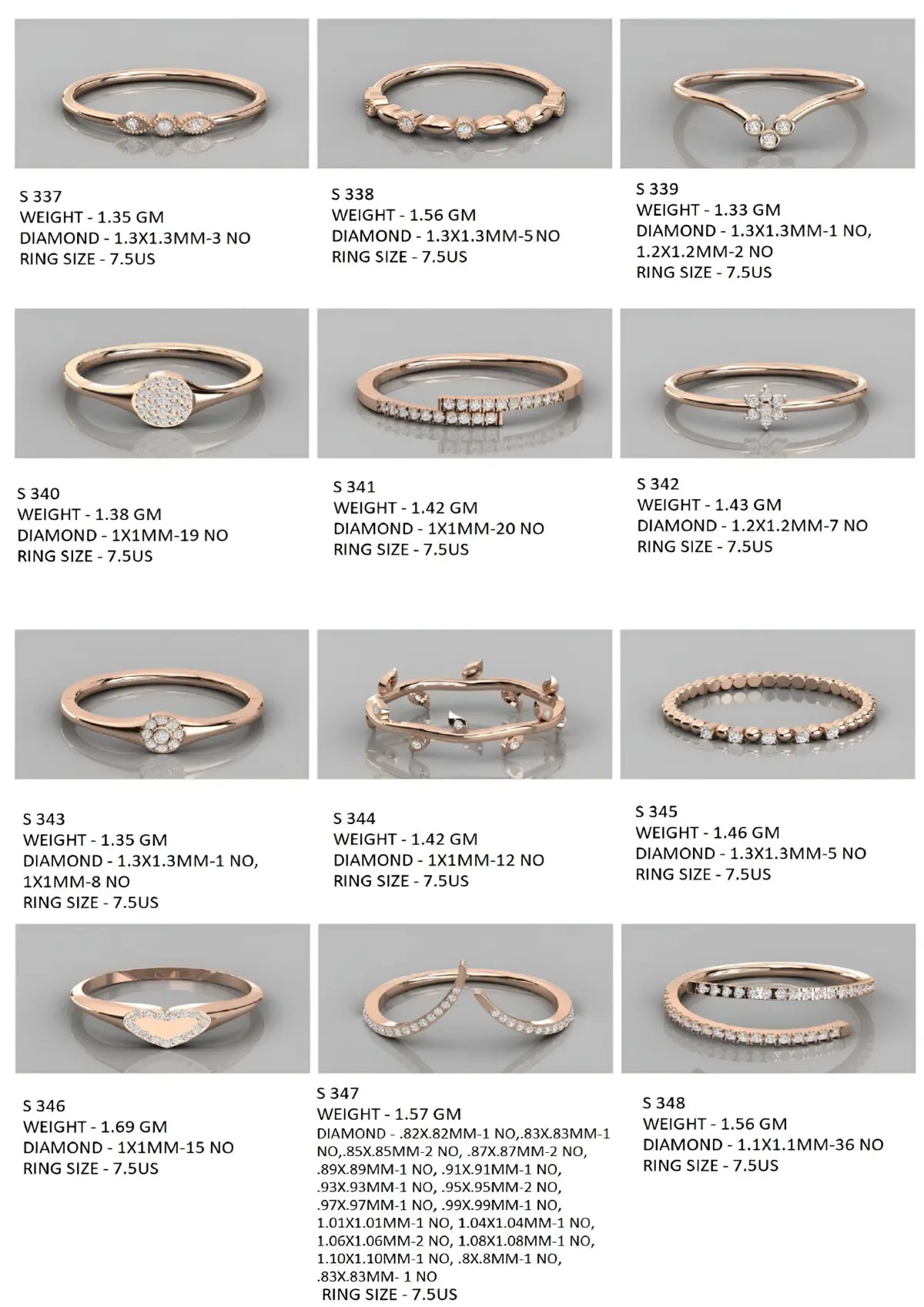 - This collection have 400 Minimalist Light Weigt Diamond rings