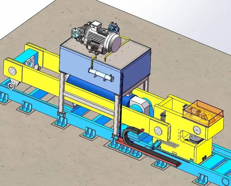 The straightening equipment in the aluminum profile hot extrusion production line, the straightening tonnage is 400 tons, the structure and parameters are original, the entire equipment has been verified by actual use, the field measured tensile force, about 420 tons by conversion calculation.