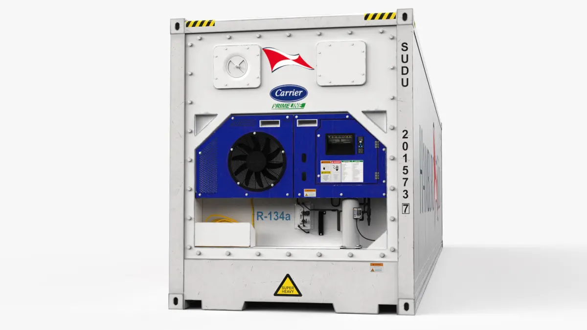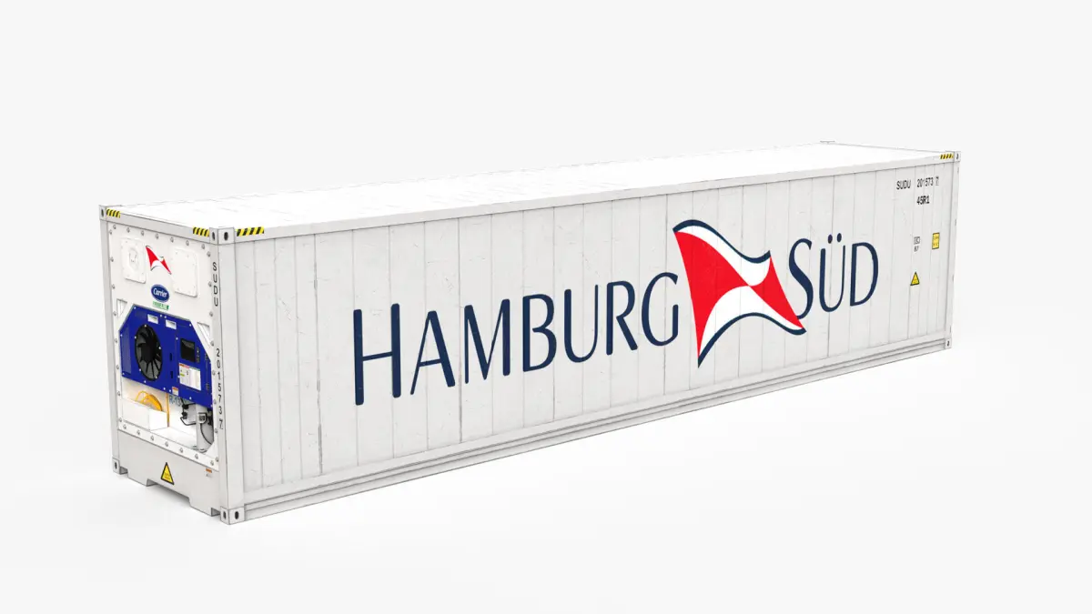High quality shipping container model equipped with reefer CARRIER. Shipping Company- HAMBURG SUD. Refrigerated by CarrierContainer type- 40 feet High Cube.Modeled in Maya 2023. Real-world scale. All textures with 4096x4096. Maps- Diffuse, Glossiness, ior, Normal map, Refection, Opacity. Extra PBR maps- Occlusion, Metallic, Roughness.