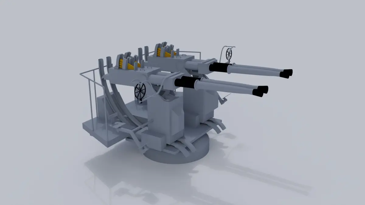The 40 mm canon was a main defense weapon on US Navy Warships against enemy aircraft.Modeled in Blender and rendered in Cycles.