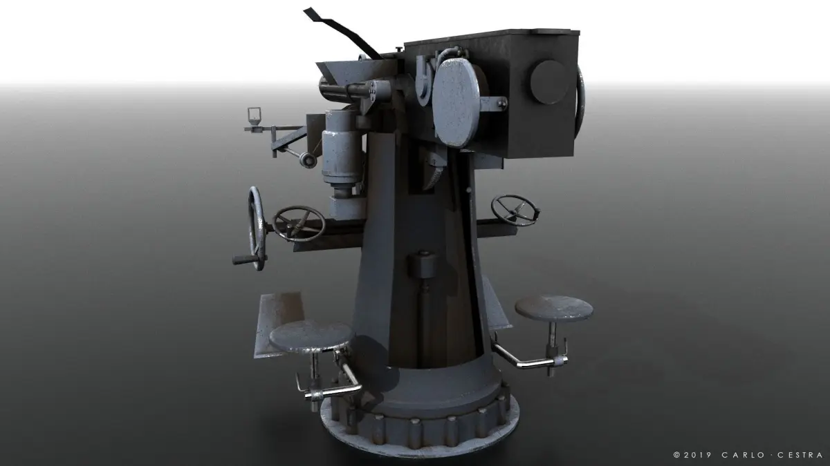 Vickers was a british 40 mm auto-cannon used as anti-aircraft gun. Vickers-Terni was an italian company born in 1905 from a joint-venture between the British Vickers and the italian Acciaierie di Terni.The 40mm Vickers-Terni was used by Italian Navy during the Second World War.