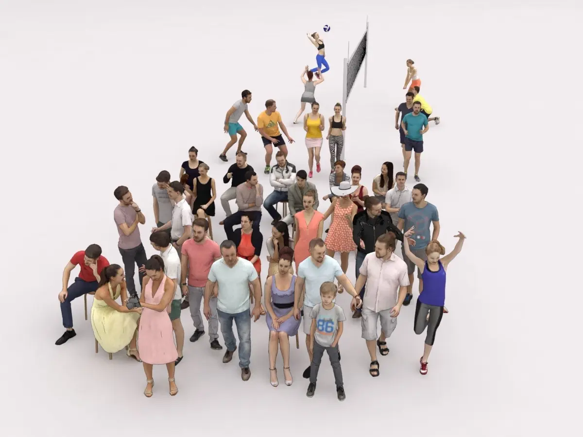 If you are on a budget, but need to quickly populate big 3d-scenes with scanned people - the Treapl FORTIES SPEEDY BACKGROUND characters are the ideal match for you.