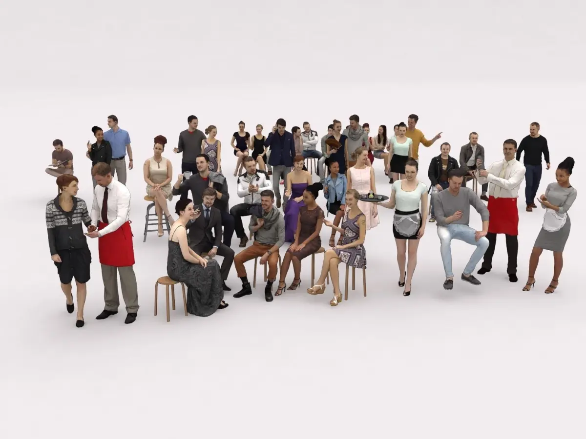 If you are on a budget, but need to quickly populate big 3d-scenes with scanned people - the Treapl FORTIES SPEEDY BACKGROUND characters are the ideal match for you.