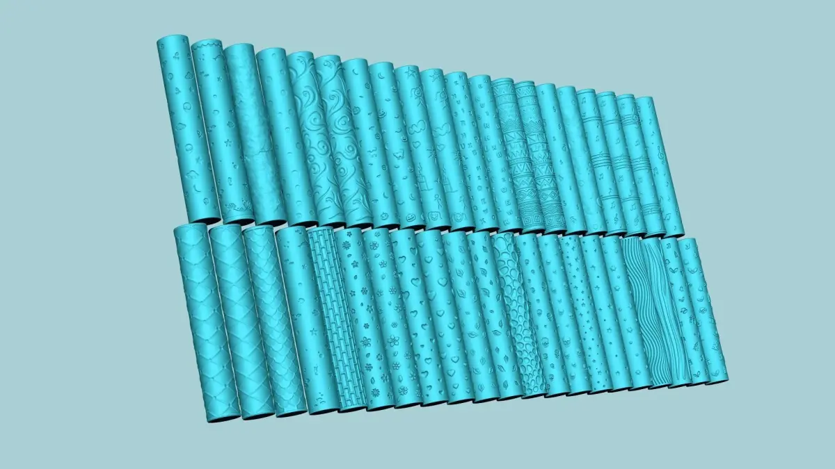 How does it work: just press the cylindrical texture roller against the material you want to apply the texture, and just roll it over and over to create an infinite texture.