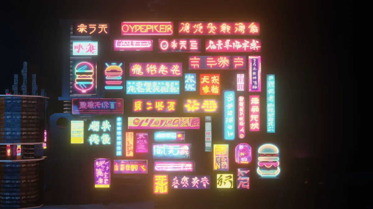 Hello. ^^ We came with 42 Neon Light Signs in Japanese like words. All of signs are PBR materials with Emission. So you can change color tones of each signs. Also there are couple of Cyberpunk style building in the pack.There are FBX format for each signs.