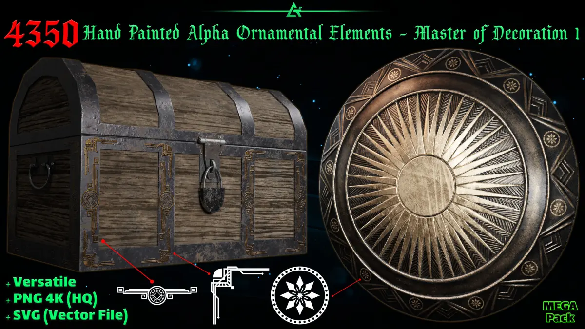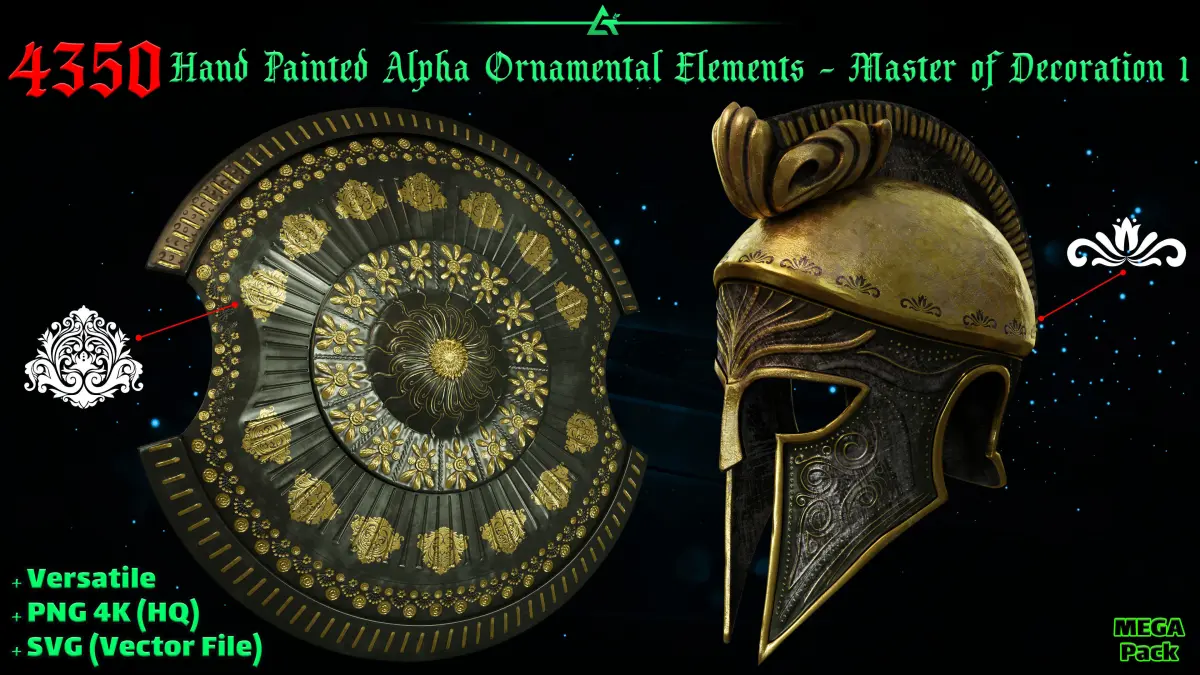 This Mega package which we named Master of Decoration 1, is the largest, most unique, most complete, and most diverse collection of practical and high-end quality 4k of Hand Painted Alpha Ornamental Elements that you can have.