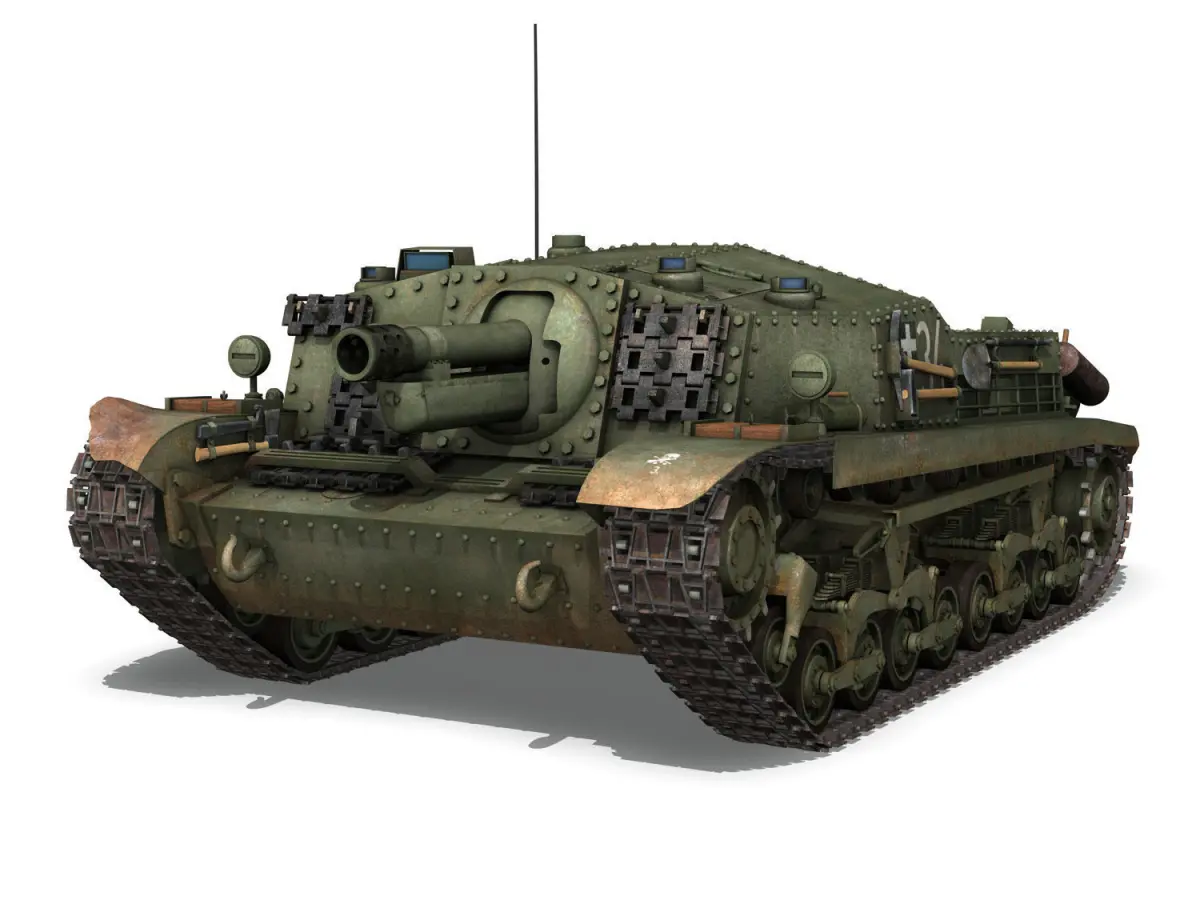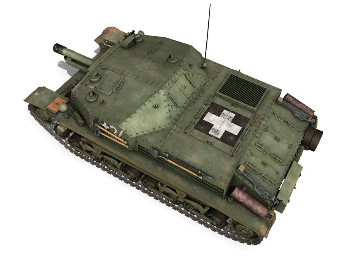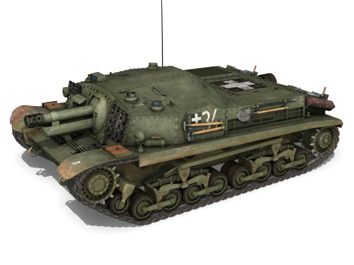 In 1942, inspired by the success of the German Sturmgeschütz III, the Hungarian general staff decided to build an assault gun. The design was based on tue 40M Turan I chassis, replacing the turret with a fixed gun in an armoured superstructure. Two designs were made; the44M Zrinyi I and the 43M Zrinyi II. The Zrinyi I was designed as a tank destroyer, armed with a long-barrelled 75 mm gun, but only a single prototype was made. The Zrinyi II, armed with a 105 mm howitzer, was designed for infantry support. A total of 60 Zrinyi II were build.