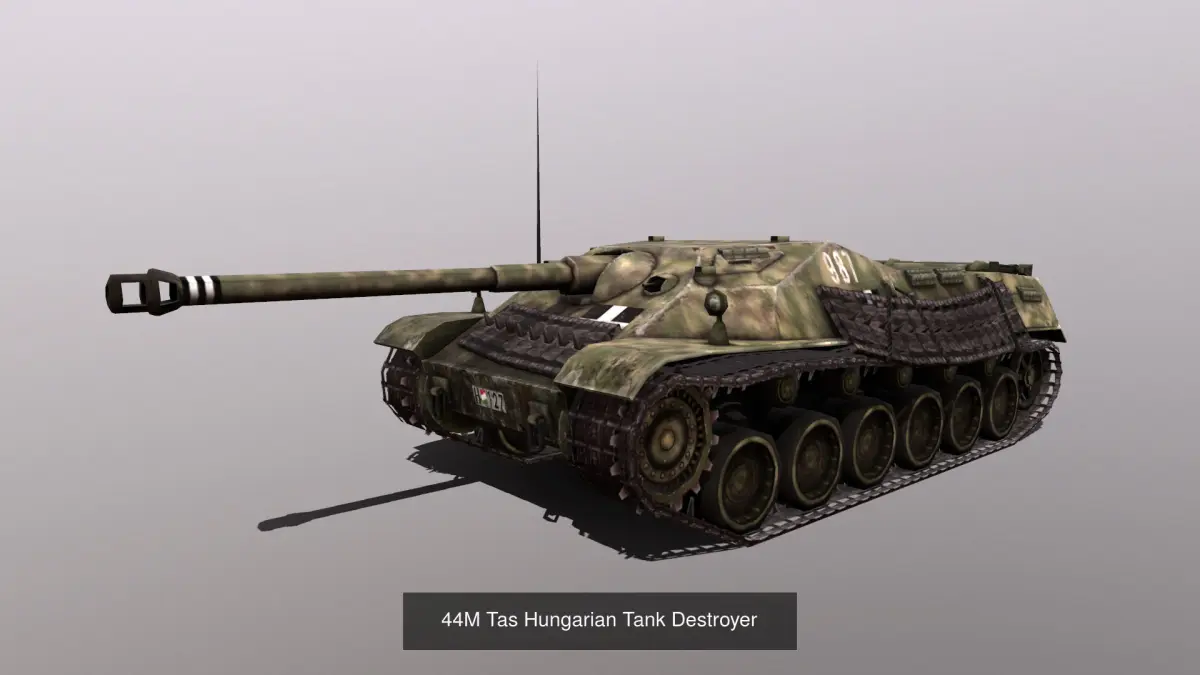 44M Tas Hungarian Tank DestroyerLow poly models for games2048*1024 texture + alfaWreck model added3 diferent textures: