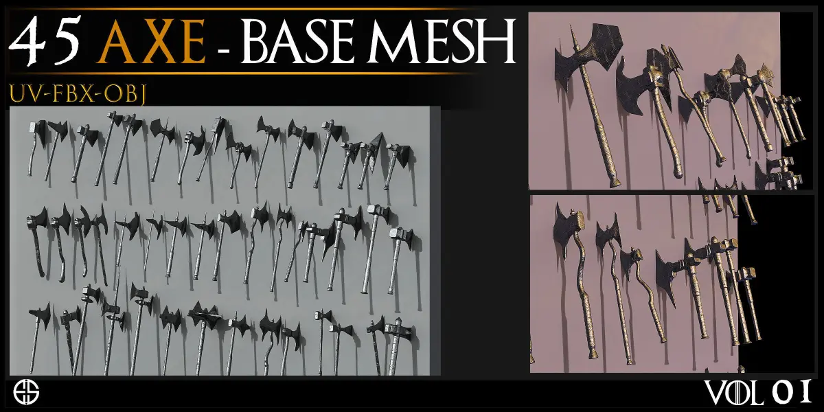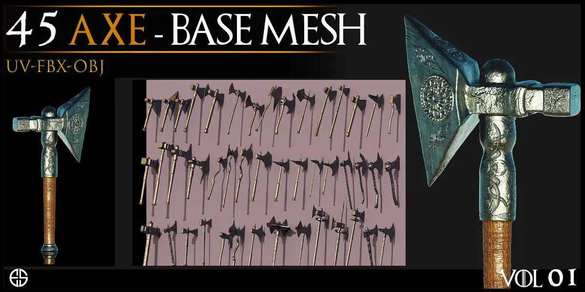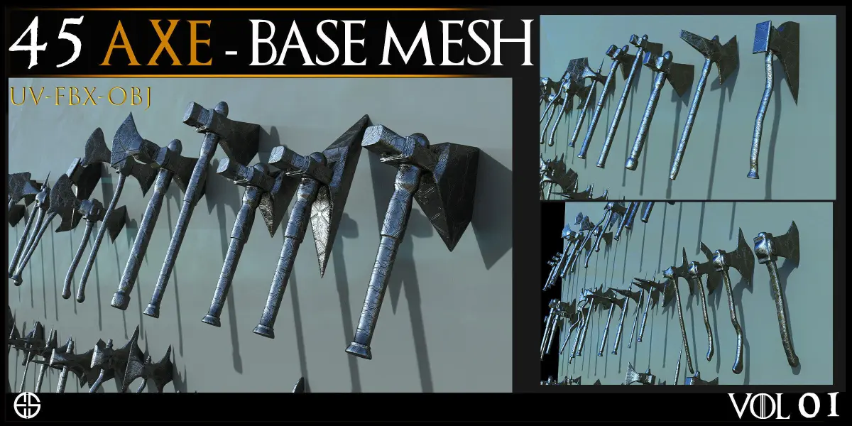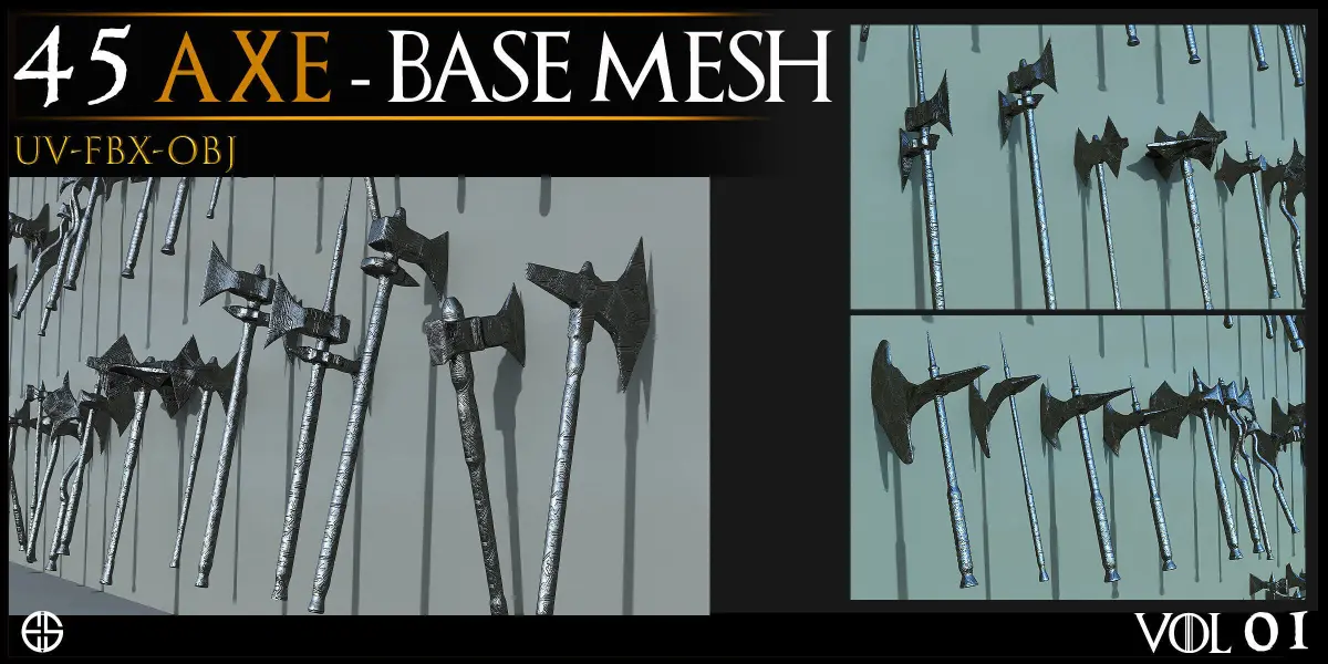 - Models of Weapons- 45 Cold Weapons-Axe Base Mesh