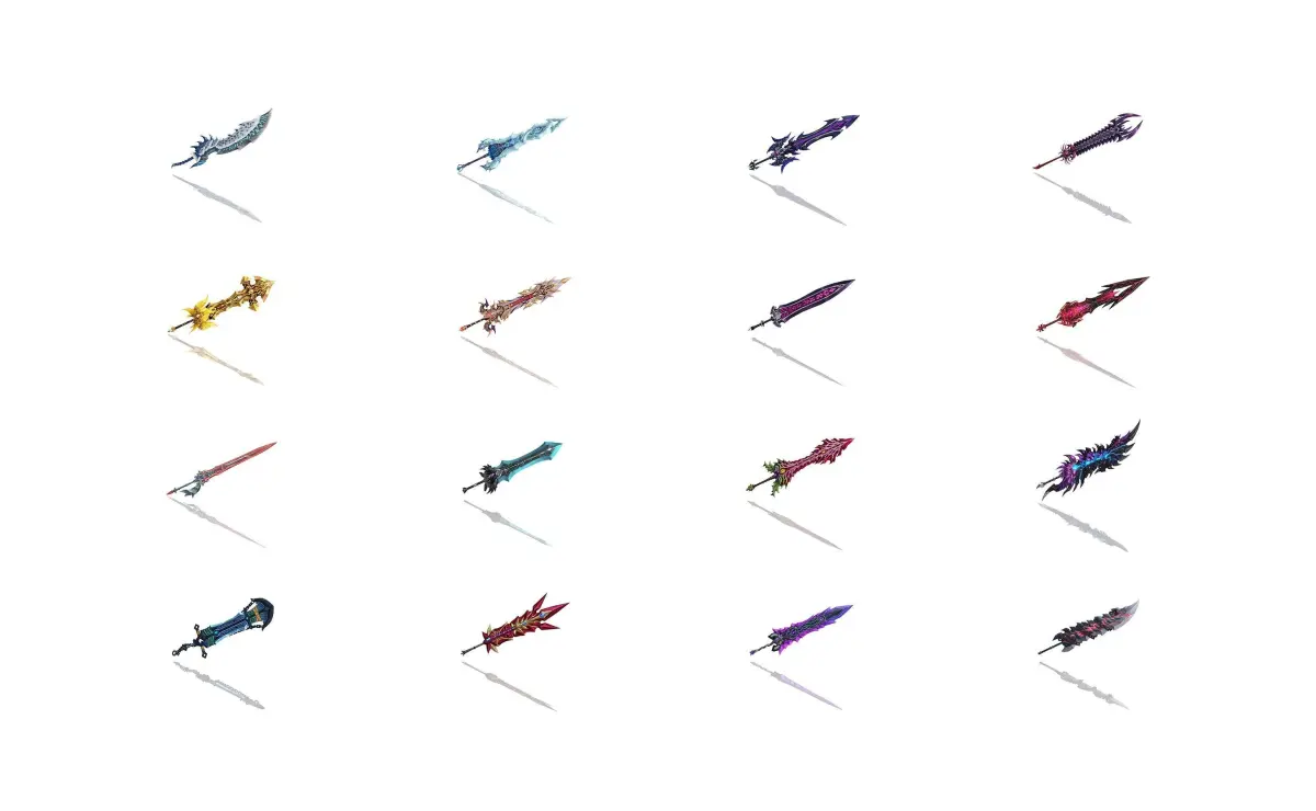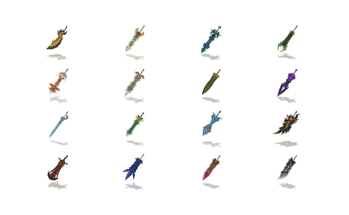 A pack of 16 greatswords in a lot of different fantasy styles.Each weapons comes with 3 textures, and makes a total of 48 weapons.