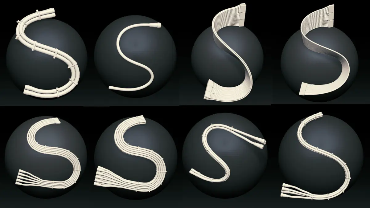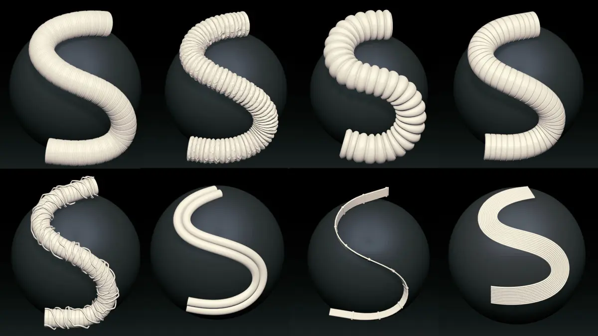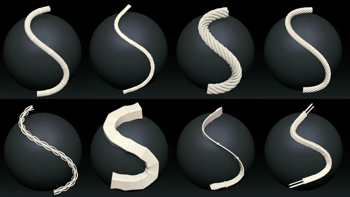 There are more than 45 IMM crved brush cables / wires/ pipes & hoses for zbrush and each brush has 2 versions high and low poly. They are ready to subd more and use in higher poly too. Also you can have all meshes.