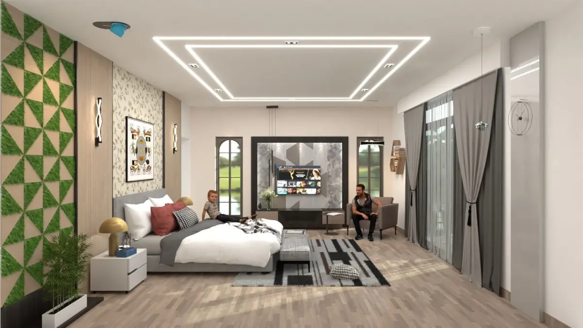 Luxurious bedroom design modeled in high precision.