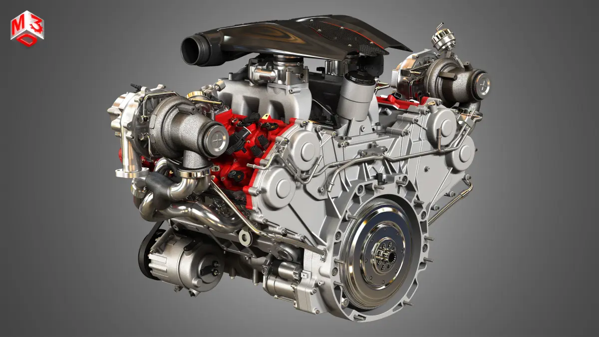 Ferrari 488 Pista V8 Engine - 3d Engine Model