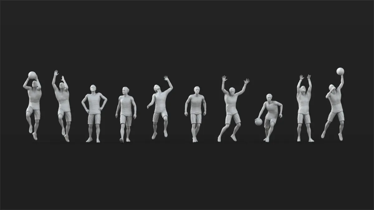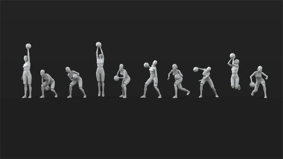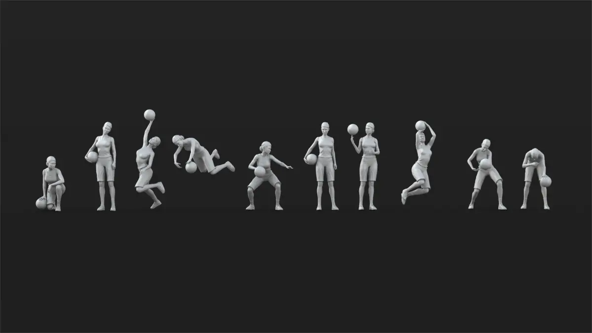 This is a Printable set of 49 basketball Player figures .30 woman figures and 19 man figures . Each model have 100K polygons. player have 6.5 cm height. Scale is 1/32 .