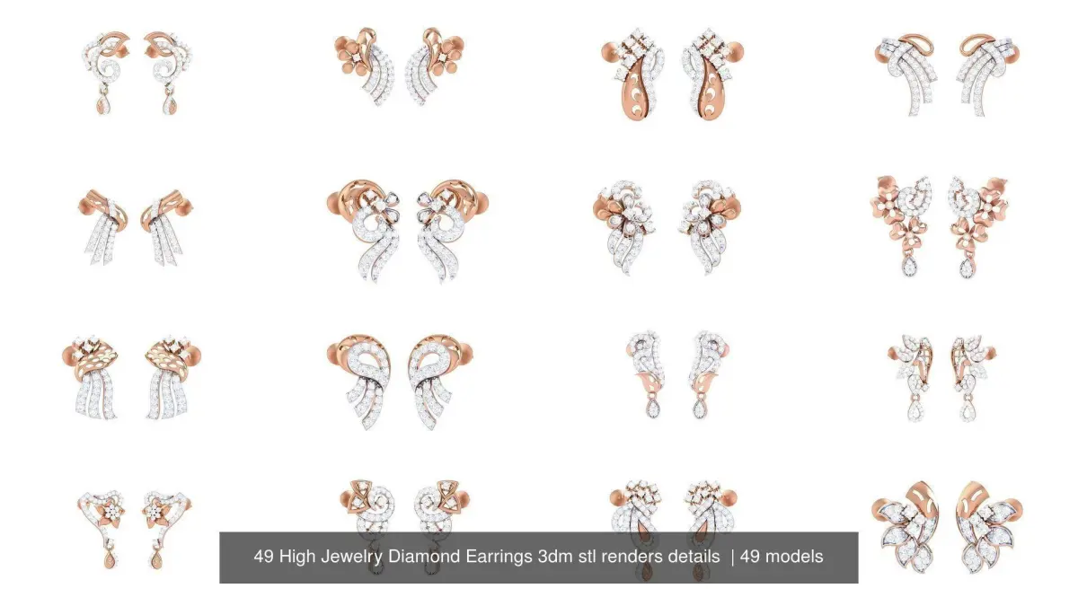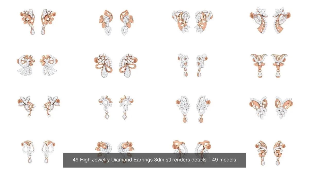 - 49 High Jewelry Diamond Earrings 3dm stl renders details