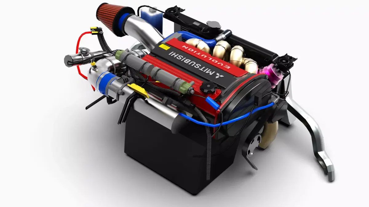 **Mitsubishi 4G63T Evolution Inline 4 low poly Engine