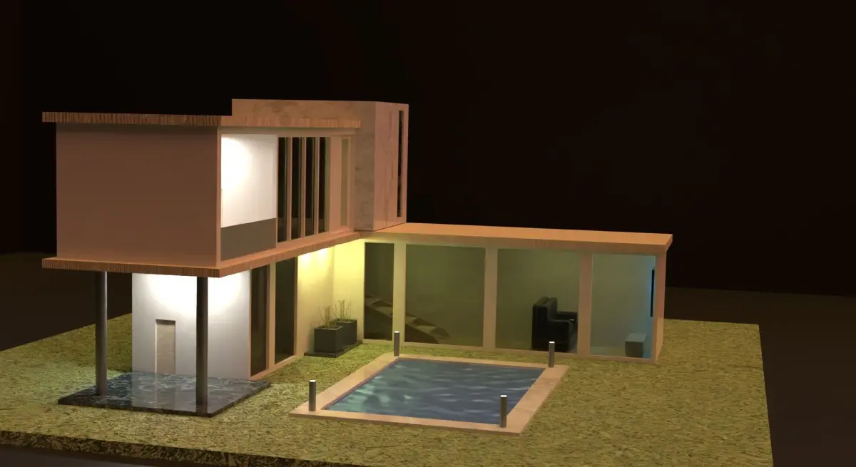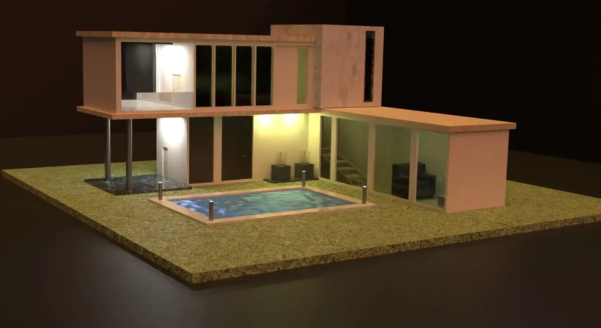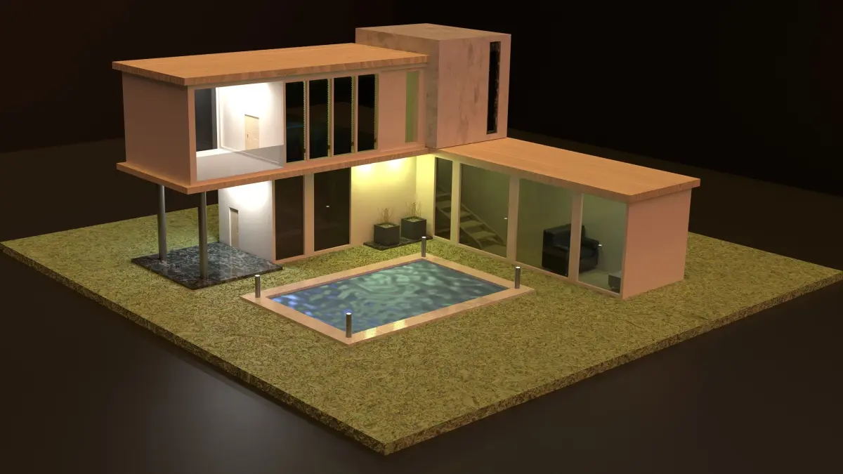 This is a 3d house. I make this in blender 2.93.0. The 3d house has 47267 vertices, 87053 edges, 40246 faces and 91040 triangles. It took me about a full day to make it.
