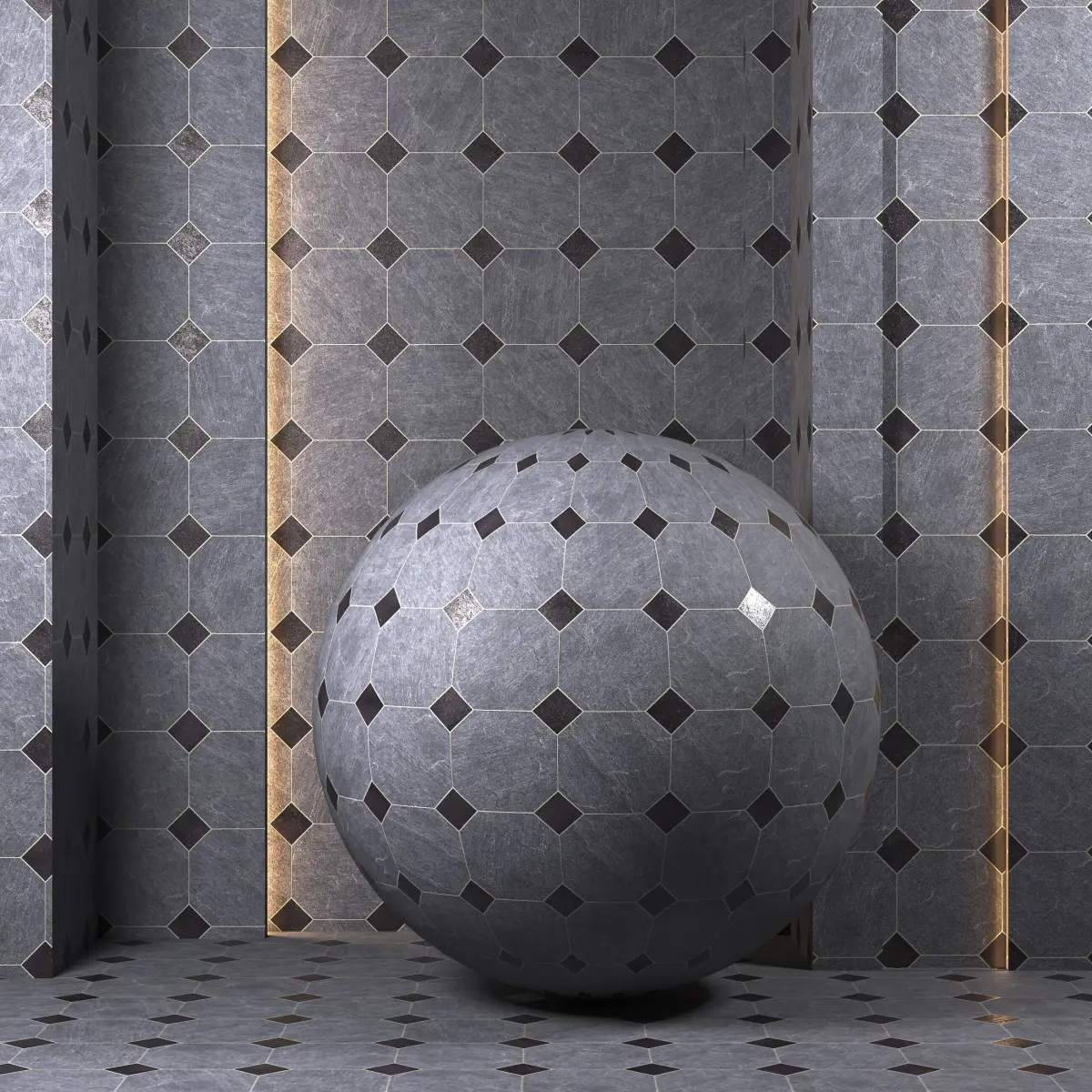 Normal Maps: Captures intricate tile surface details, grout lines, and subtle surface imperfections for enhanced visual depth and tactile realism, adding subtle contour and definition to each tile pattern.