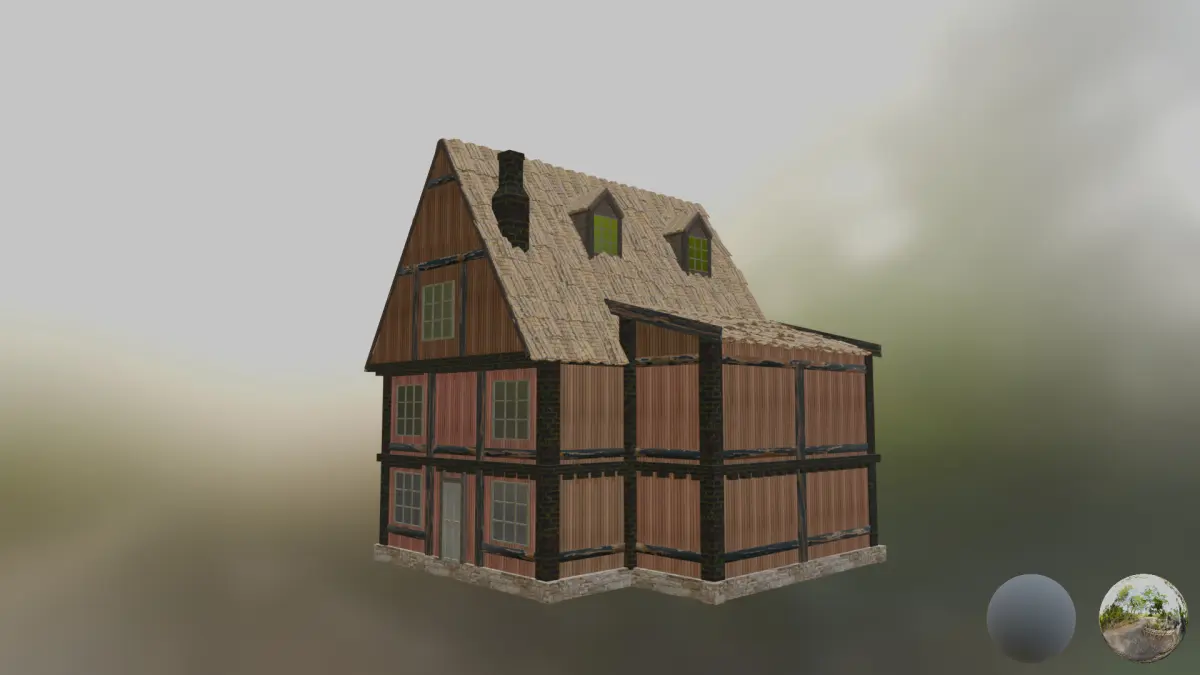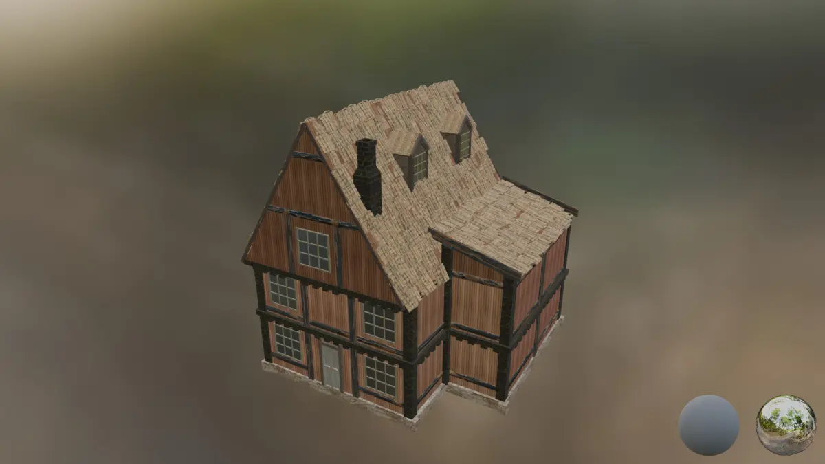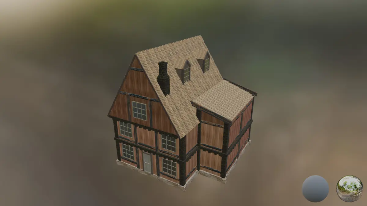 Next gen, AAA quality, game-ready model of town building.