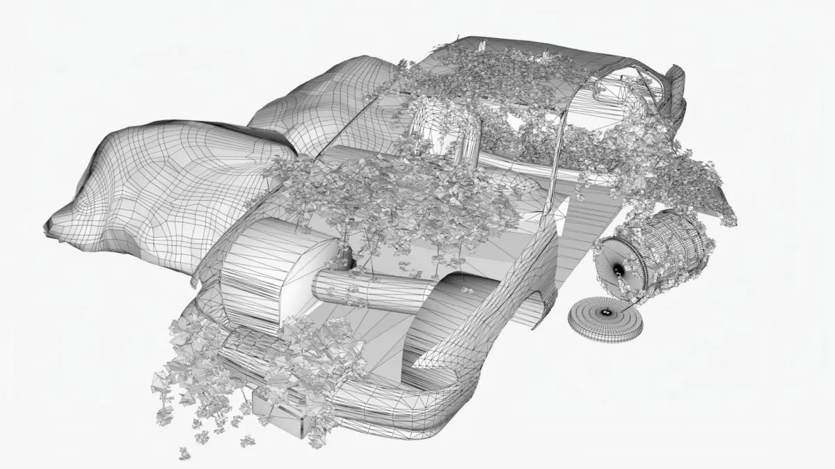 HomeCatalog4K realistic low poly abandoned car recycle bin and rock Low-poly 3D model
