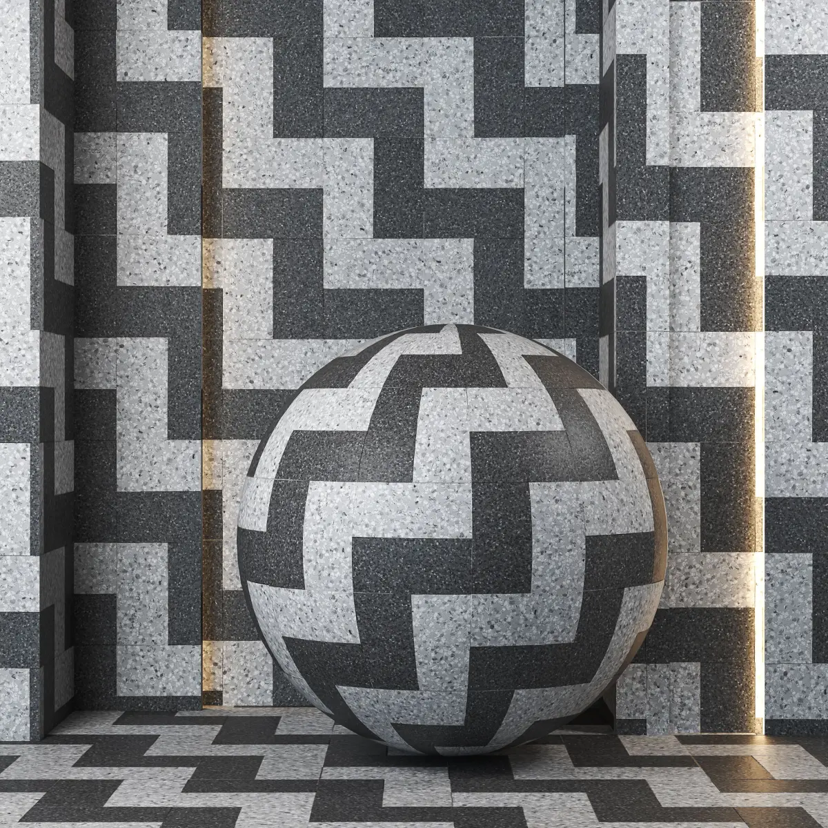Normal Maps: Captures intricate terrazzo surface details, stone chip variations, and subtle surface imperfections for enhanced visual depth and tactile realism, adding subtle contour and definition to the diamond pattern.