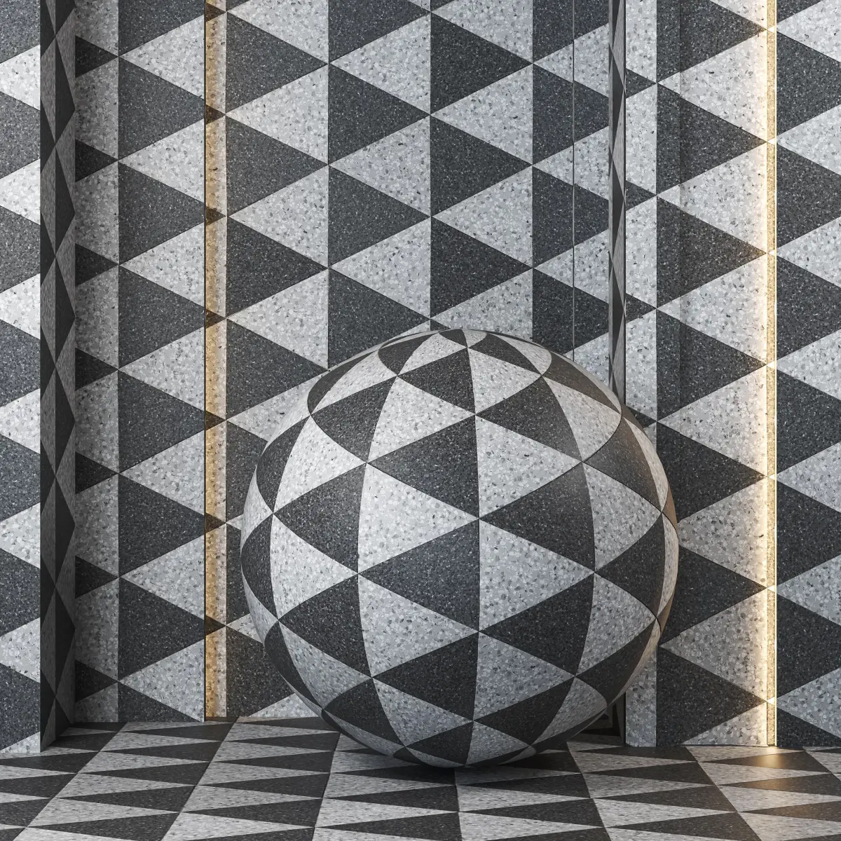 Modern & Geometric Design: Achieve a contemporary and sophisticated look with these terrazzo diamond textures, perfect for adding a touch of geometric elegance to your 3D interiors.