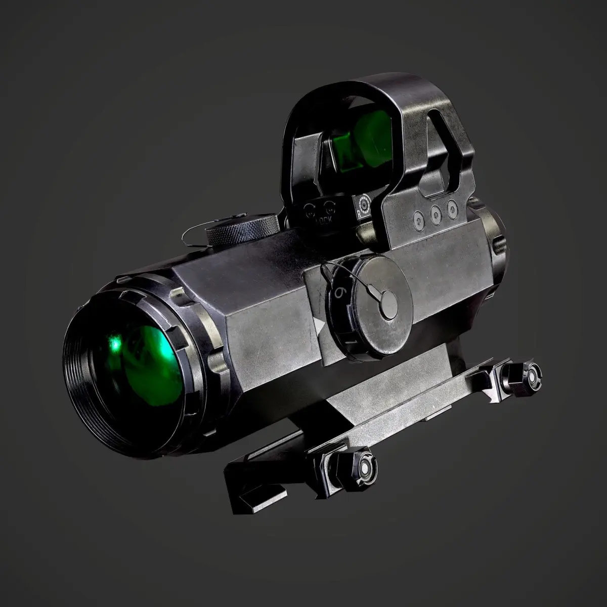 4x24 Scope, Game Ready asset is a high quality, low poly asset originally modeled in 3DS Max 2017.