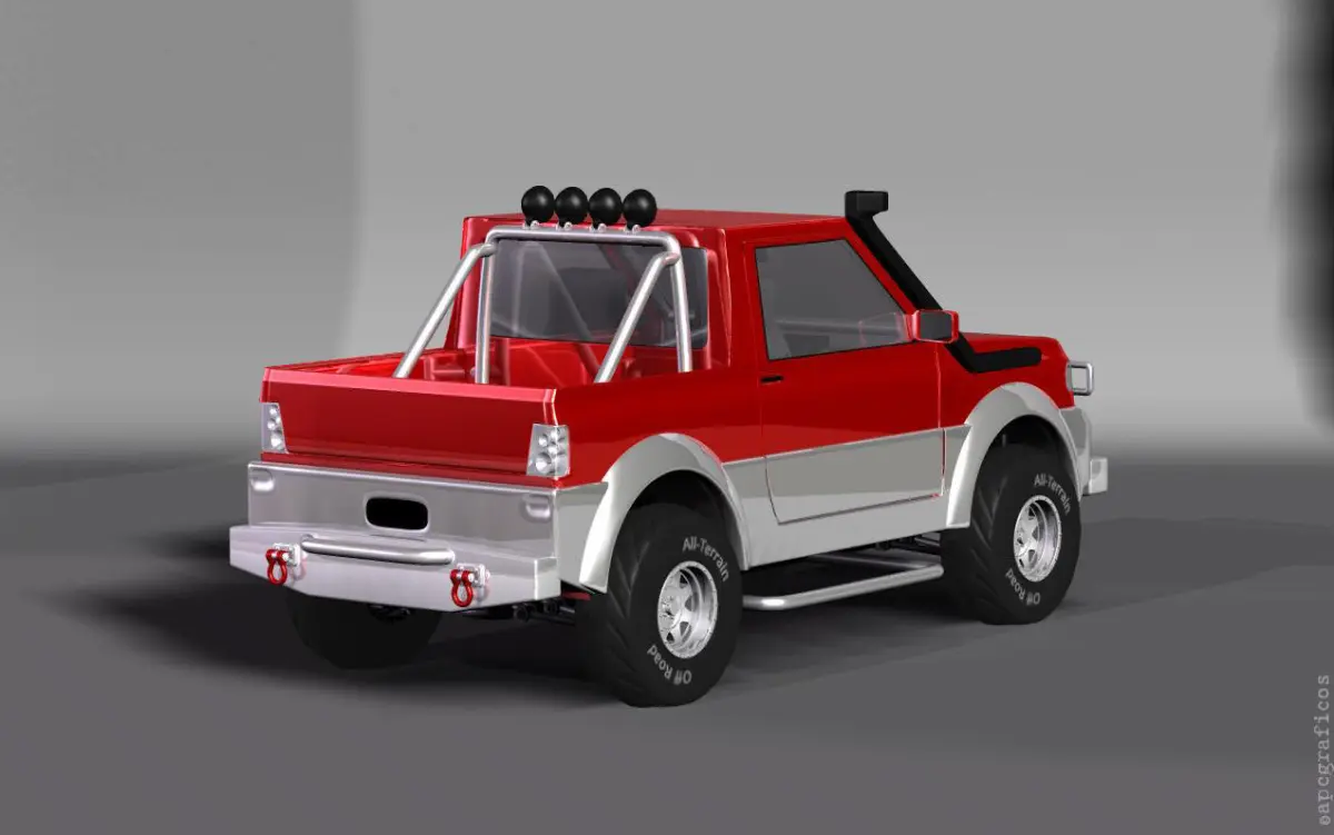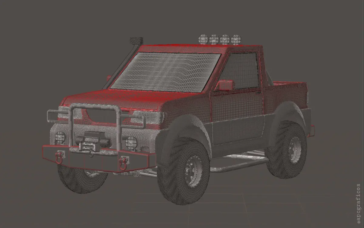 4x4 Pickup. Includes basic UV maps and some texture maps for the details.This is the pickup version, also available in standard and off-road versions and in a Bundle with all 3 models.