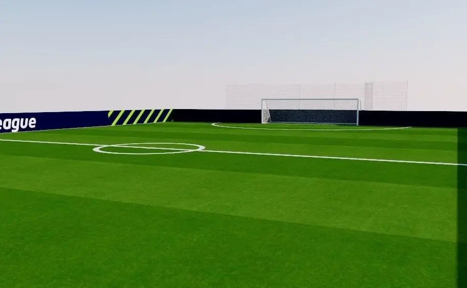 5 A side football pitch. Freestyle football with artificial turf, two-tone grass.The goals have an approximate height of 1'50 meters.