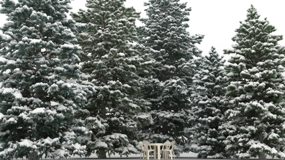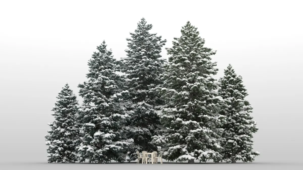 package contains 5 summer and 5 winter spanish fir tree models. winter trees are exactly the same summer trees with snow.