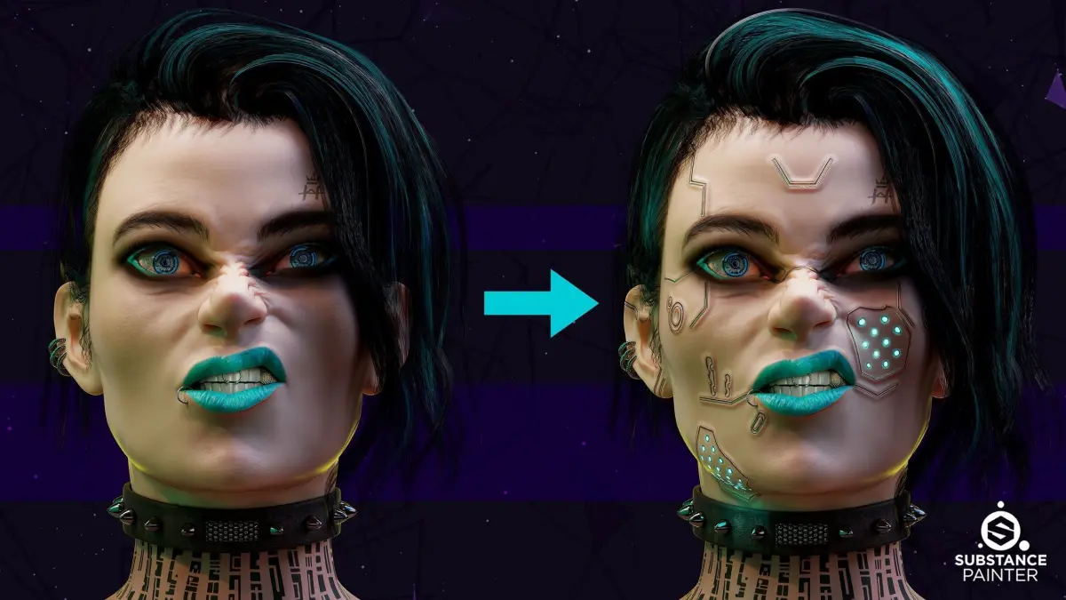 you will get 5 cyberpunk smart materials(brushes) for substance painter to give you the power of detailing your skin to the next level and make a cool result