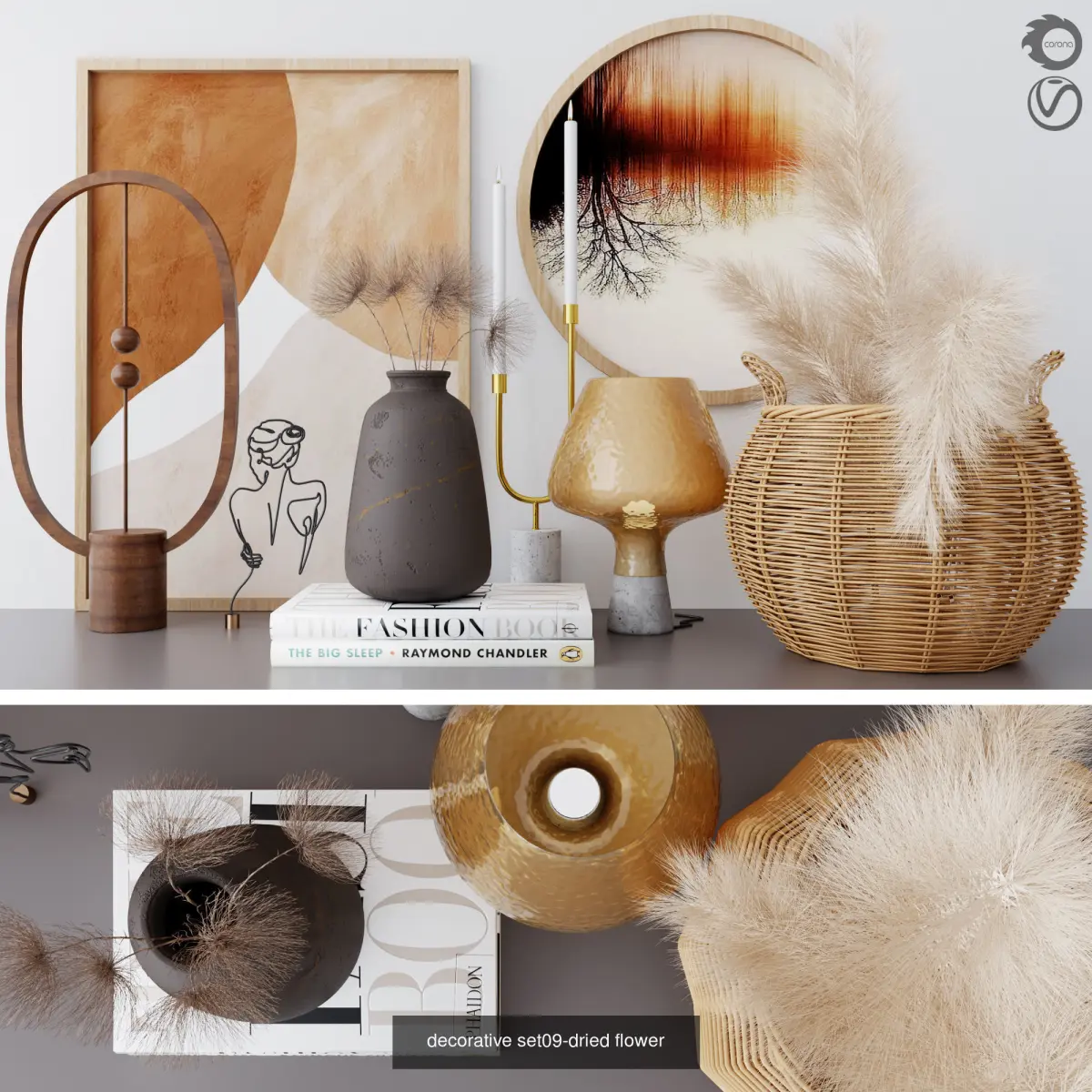 Decorative set with dried flowers it is suitable for livingroom and bedroom you have dried flower with autumn them files:3dsmax2015 render:corona+vray fbx:corona+vray polys:527,952 vertx:621,337