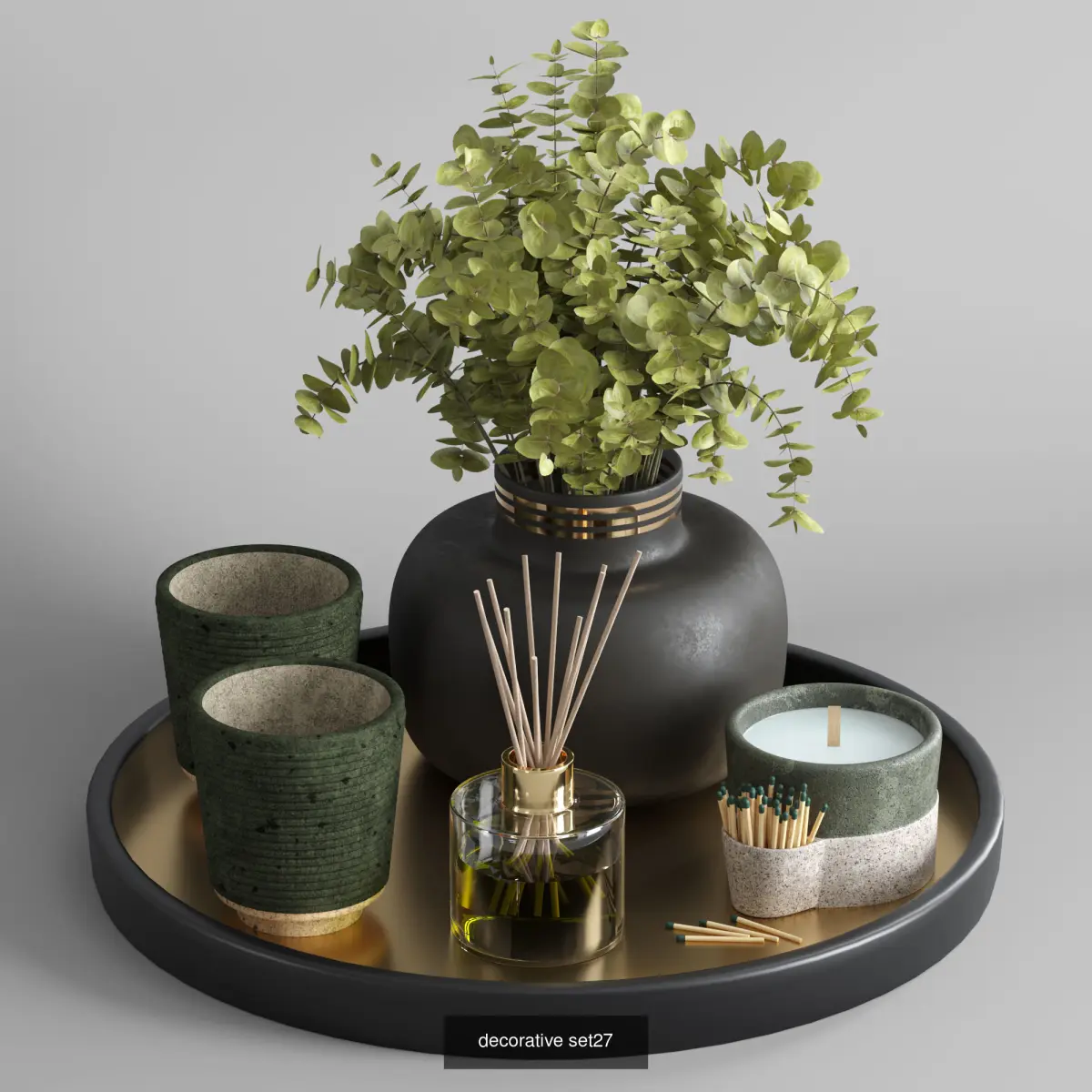 Name: decorative set27 Version: 2015Polys: 47,582vertx: 53,200XForm: YesBox Trick: Yes Render: Corona + vrayFormats: 3Ds Max 2018, fbx+obj
