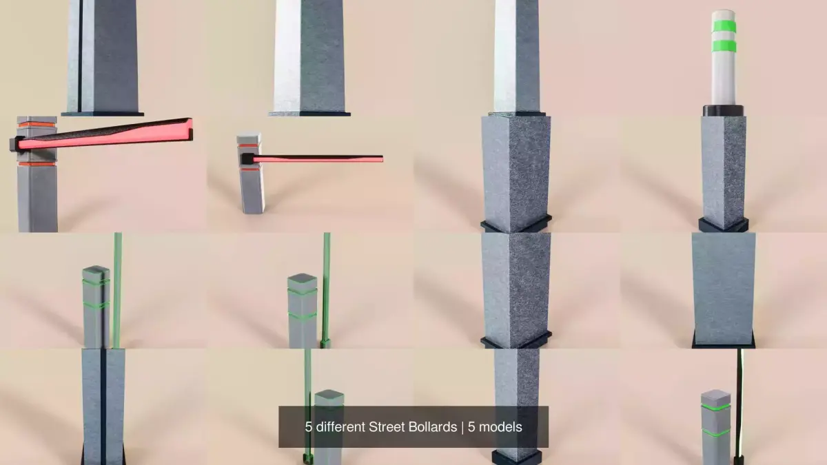 Home Catalog 5 different Street Bollards 3D Model Pack