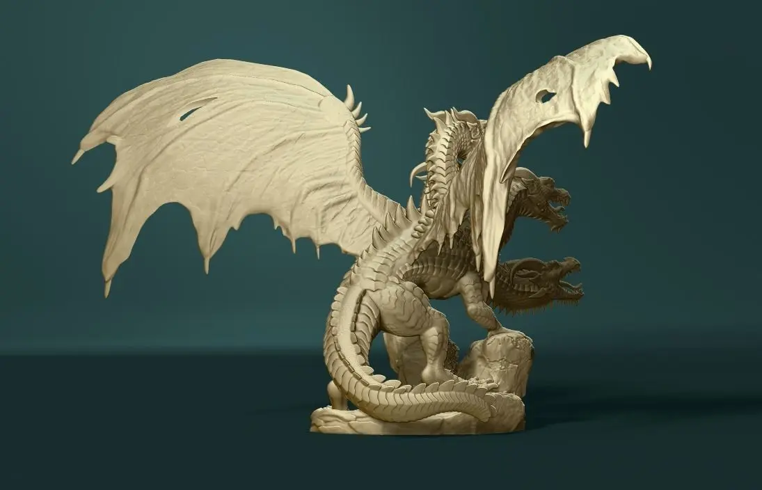 its a 3d printable model of a 5 headed dragon.file is cut into several pieces so as to fit on smaller resin printer bed .a complete uncut version is also uploaded so if you want to cut it yourself.let me know if you have any problem with the model or printing or if you want me to cut it differently i would charge about 5$ to 10$ depending on complexity. also check out other models i have made and like the model if you liked it.