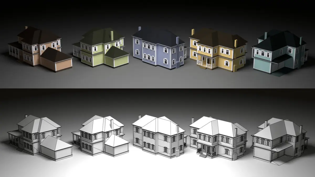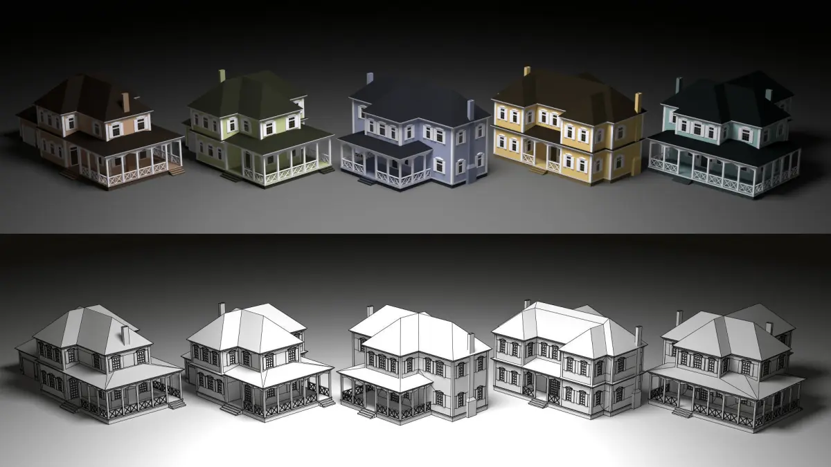 HomeCatalog5 low poly cartoon country cottages Low-poly 3D model