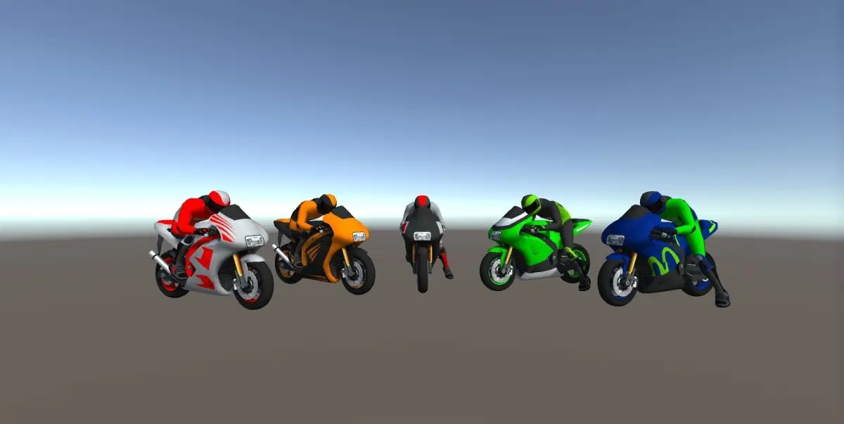 5 Low Poly Racing Bikes With Rider Low-poly 3D model