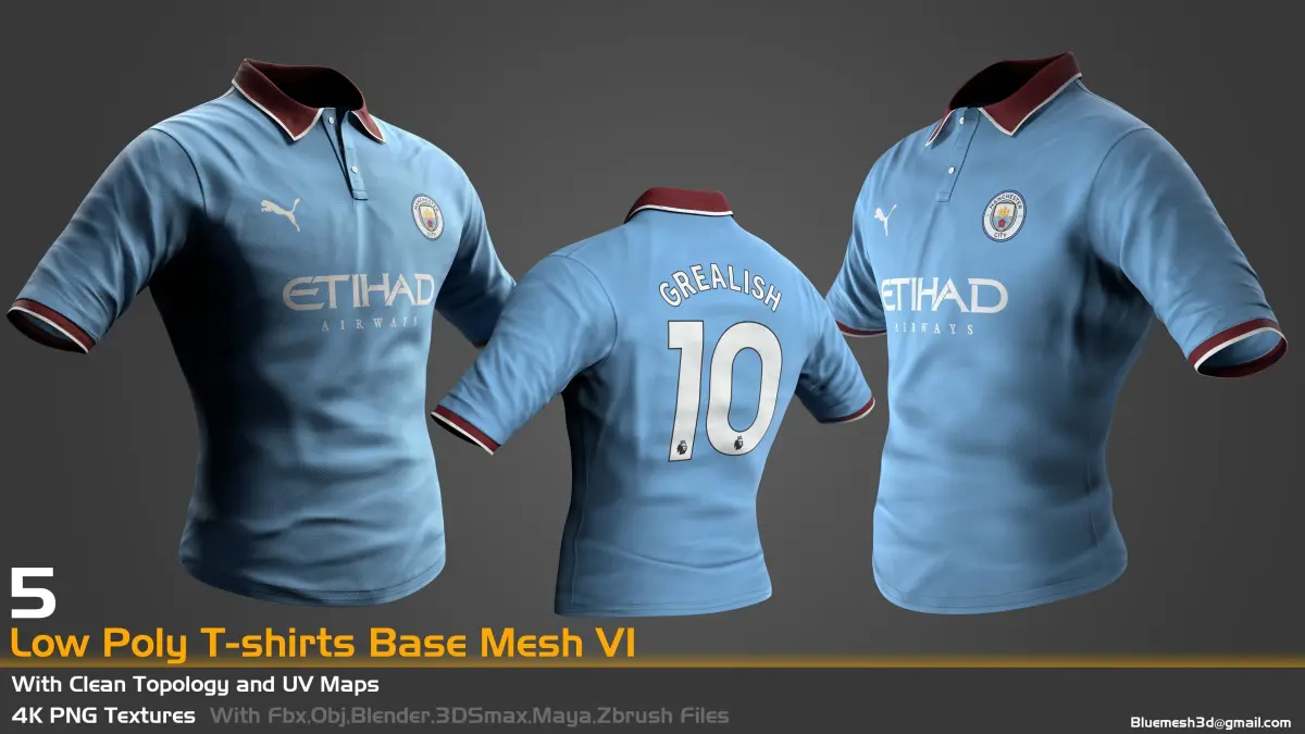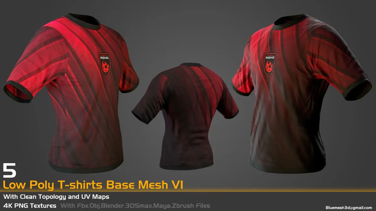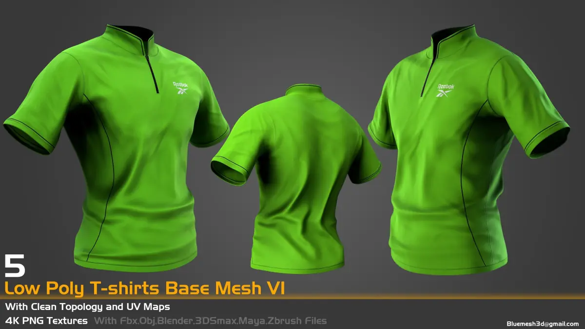 Hi everyone.I am happy to share with you the first set of low poly T-shirt models that I recently made.In this collection, all my efforts have been to consider the best quality and the low poly and to be close to reality.This collection includes 5 low poly T-shirts with clean topology and UV map. With 4k PNG textures.The textures are for display, you can use them or create your own textures.You can use the normal maps in your work.This collection has been modeled and optimized for all purposes of animation, games, shows, etc.You can use these files in all software such as Unreal Engine and...Various FBX, OBJ, Maya, 3dsMax, Blender, and Zbrush files are included in this collection. The grouping of each T-shirt is done in Zbrush software and you can easily export those groups.You make me happy by leaving comments and likes. thank you