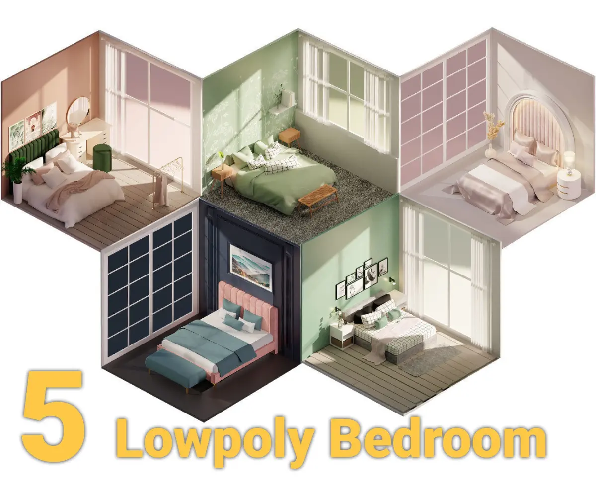 Buy 5 Lowpoly Bedroom VOL 02 Low-poly 3D model