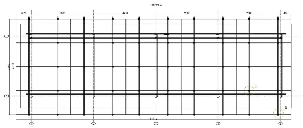 Distance between two columns 2500 mm.