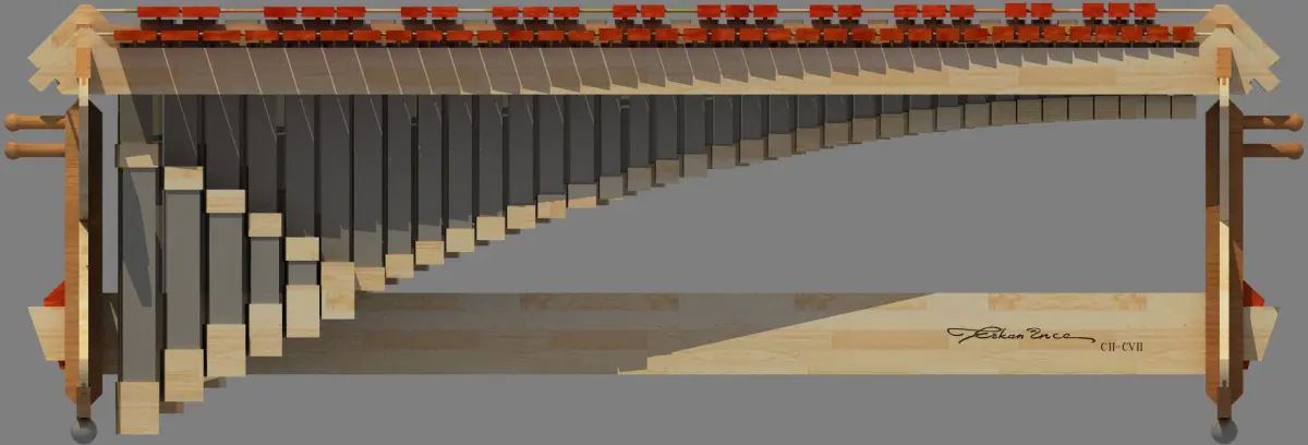 CII-CVII, 5 octaves symphonic marimba.Embellish your sitting room with the Marimba. Marimba is a percussion instrument includes a set of wooden bars struck with mallets to produce musical tones.