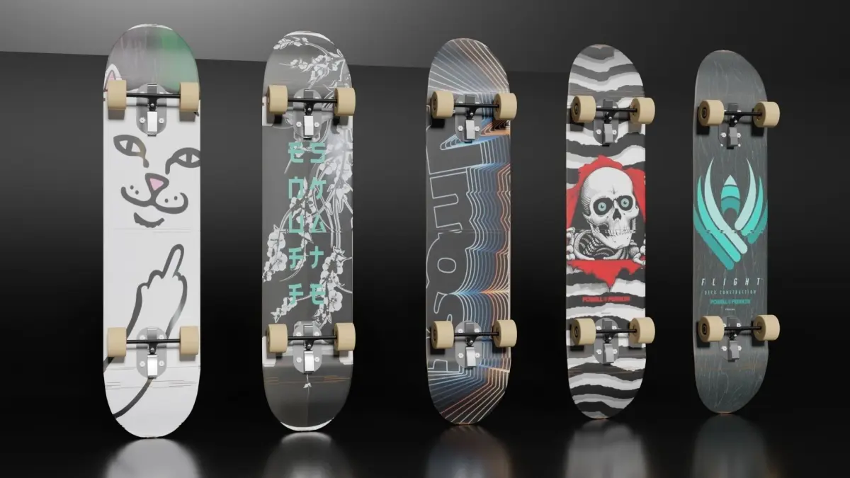 This model included 5 different skateboard. The pack has 5 different decks, decks and textures are in the ''Textures.rar'' file. Polygons and vertices values show just 1 skateboard.