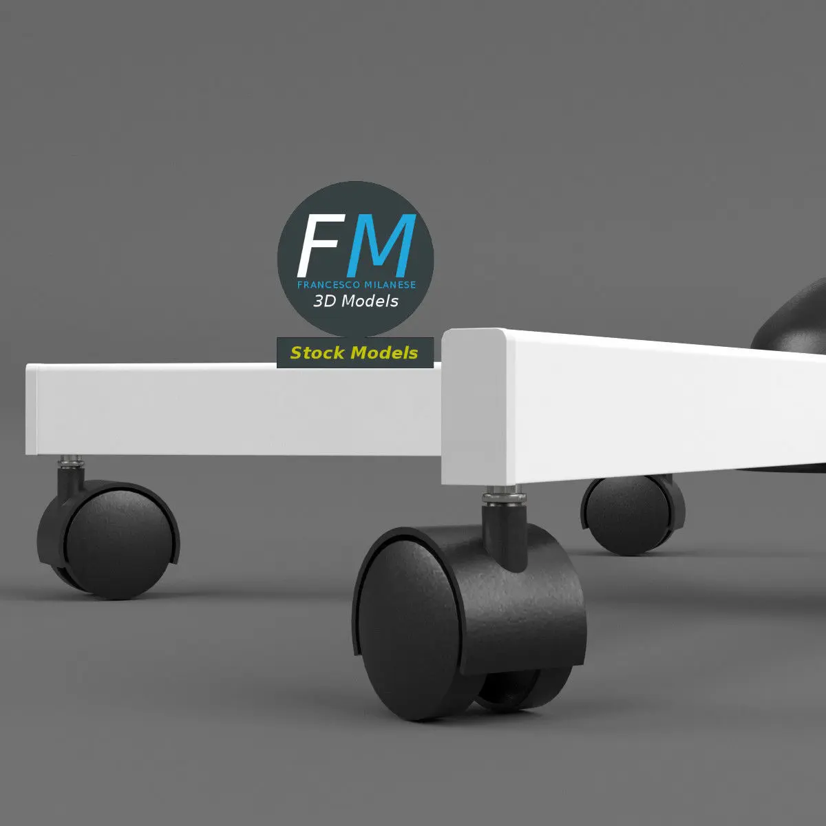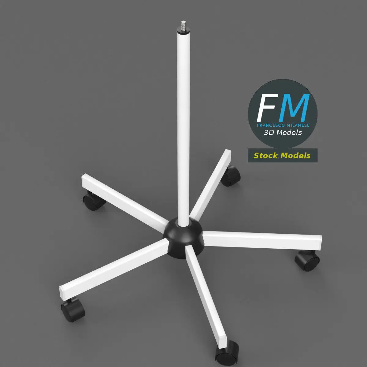 A 5 wheels rolling stand base 3D Model. 8 individual objects (5 wheels, base, pole, screw top; so, you can easily animate the wheels or remove the screw top), sharing the same non overlapping UV Layout map, Material and PBR Textures set. Production-ready 3D Model, with PBR materials, textures, non overlapping UV Layout map provided in the package.Quads only geometries (no tris/ngons).Easily customizable: UV unwrapped geometries; UV Layout maps provided in the package as png with alpha images.Each Object, Material or Texture provided in the package has a unique, meaningful name.Made in Blender 3.3 with Cycles Principled BSDF PBR shader with textures included (Eevee compatible), then exported to OBJ and FBX (with embedded PBR Textures); materials and textures made in Substance Painter, exported for PBR, Cycles, V-Ray, Unity, Unreal.PROMO IMAGES: the first image has been rendered in Cycles for Blender; in particular, you can find 11+ promo images in this description: