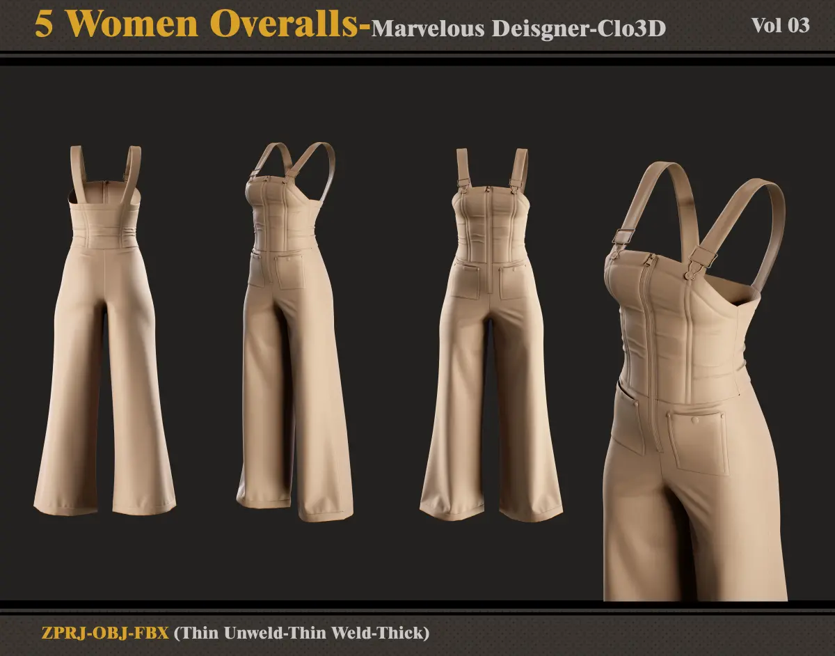 Hello ;)This product contains 5 Women Overalls and 5 Files. In each Files, there are:
