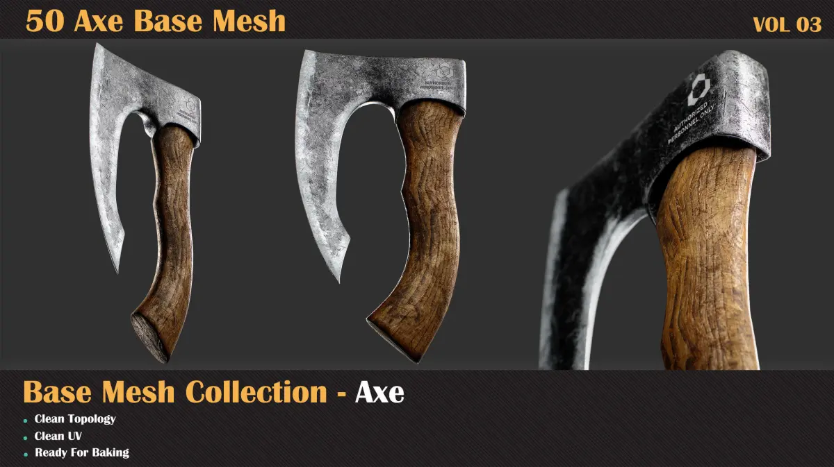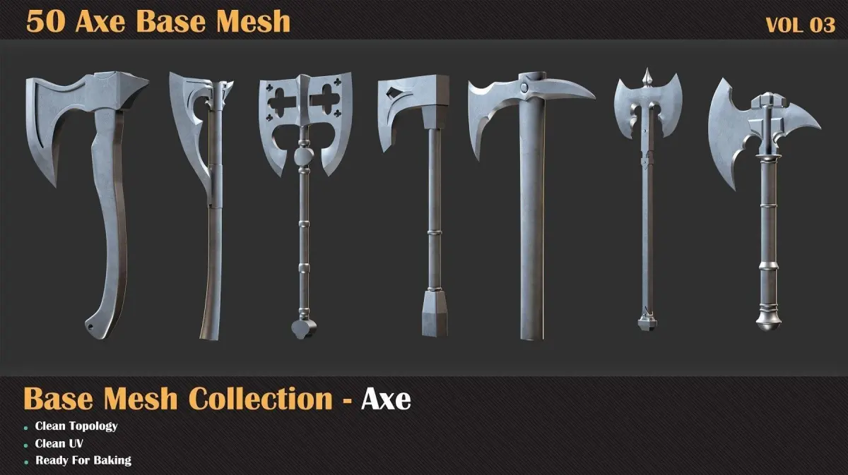 https://www.artstation.com/a/9506151In each project, many items required by the artists consist of repetitive and similar items. To increase the speed of each artist in all tasks and parts of the project, we need a library of suitable models for various purposes, such as creating high-poly or using as a low-poly. In this package, we gather around fifty different types of Axe for you. From Now, You can need your meet in the Axe area with this library. All of them have proper UVs, which you create your high-poly and bake it. After All youafter purchasing this package, you will get :50 3d model as FBX and OBJAll models have both UV channels 1 and 2Ready for the baking processDo you want it ? smileyhttps://www.artstation.com/a/9506151
