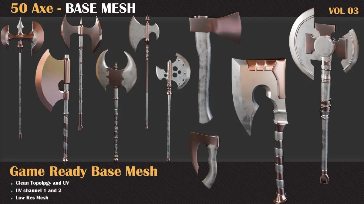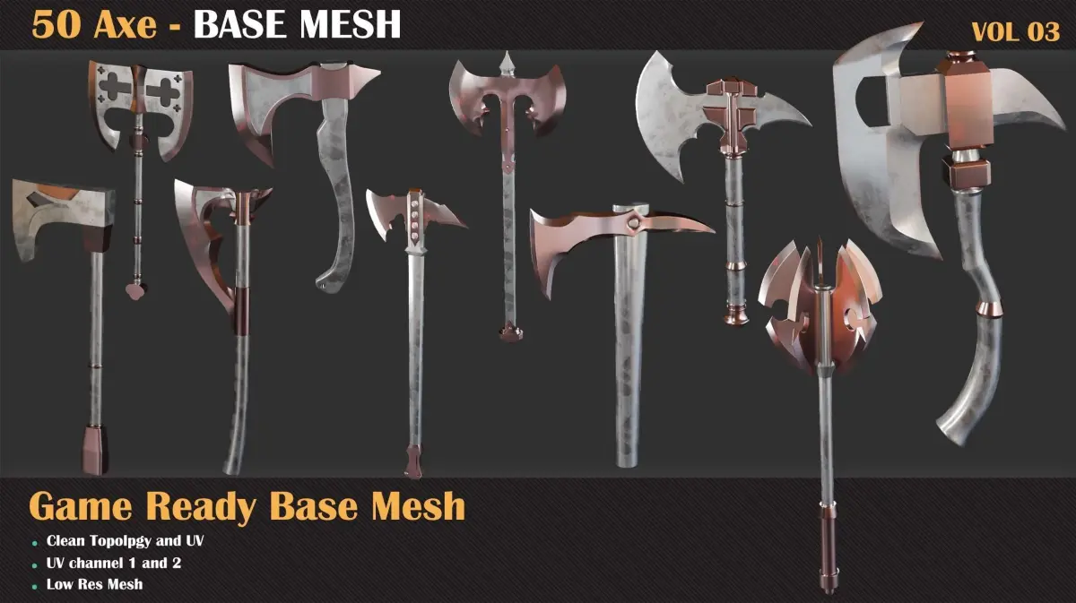 VOL04 - 50 Axe Base Mesh (Game Ready): https://www.artstation.com/a/11560883