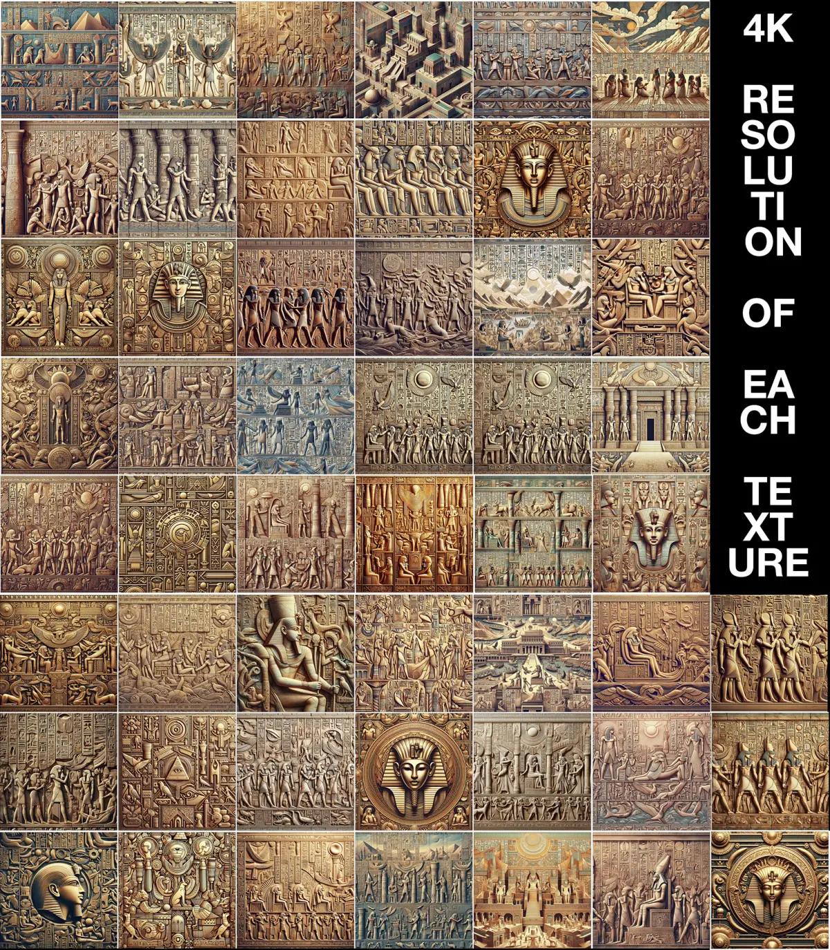 Egypt Detailed Civilizations 4K Textures or Wallpaper, Number of Images 50, An ai created images for 3d software texturing. Product completely 4K Resolution JPEG version.