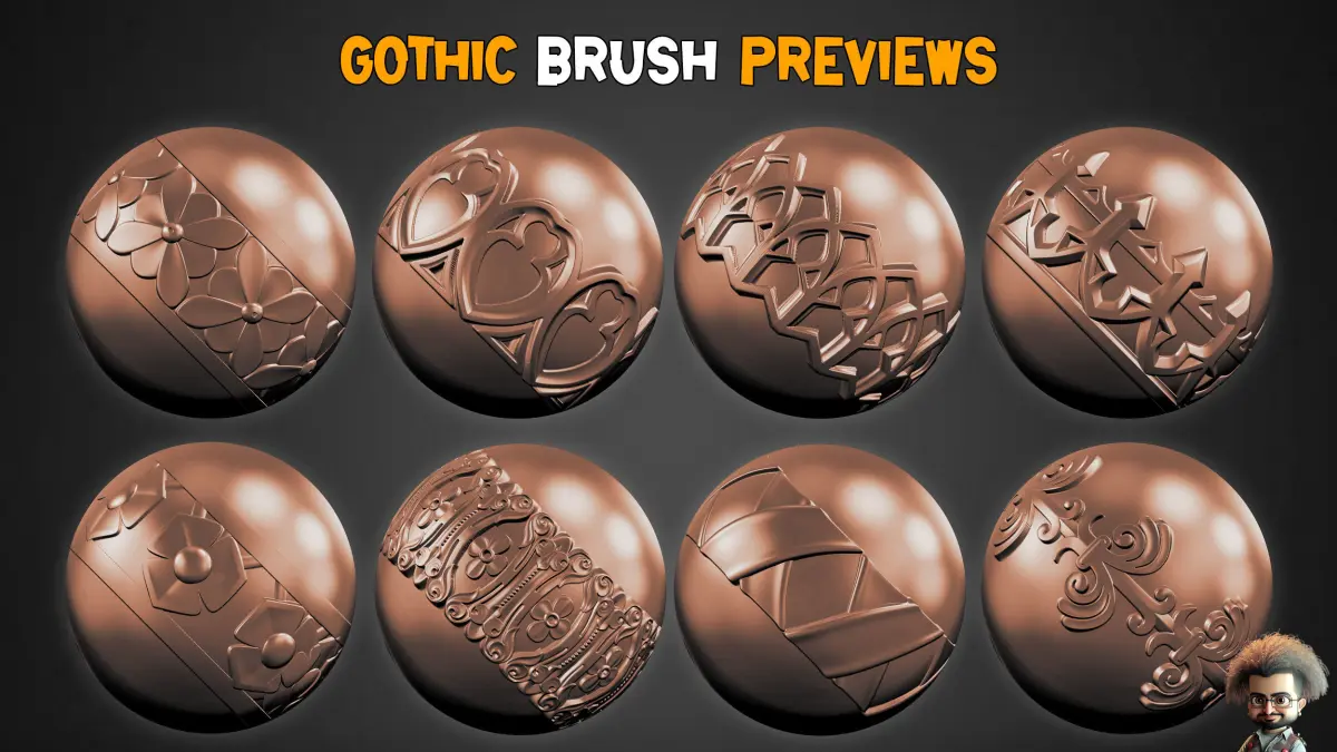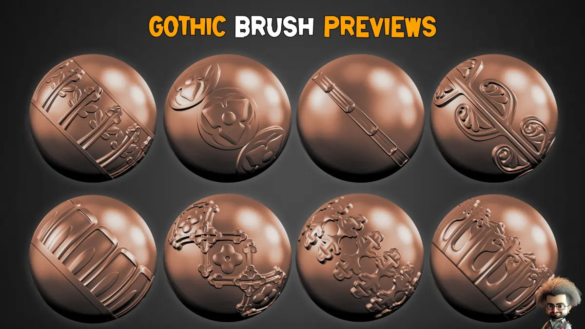 50 Gothic Trim Brushes 3D models16 BitZbrush Brush ,PSD , PNG , TIF, OBJ , FBX , MAX ,PDF (preview)Unwrapped3D Models OBJ-FBX-Max File(2018).Note :