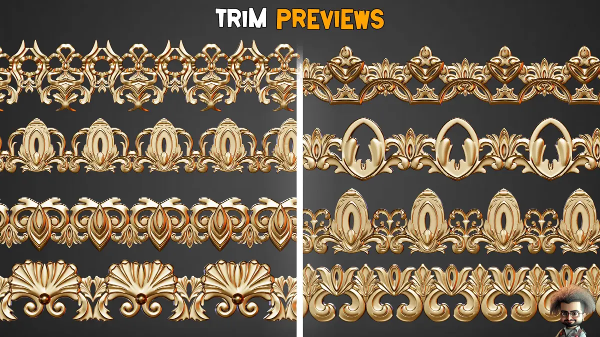 50 Handcrafted Gothic Trim Brushes – Sharp silhouettes, fine curves, and classic motifs Ready for ZBrush & More – Includes IMM and high-resolution alpha brushes Hi-Res Textures: PSD, PNG, TIF – Seamless, clean, and adaptable 3D Files: FBX, OBJ – Fully modeled and ready to integrate Catalog PDF – Visual guide for fast browsing & selection